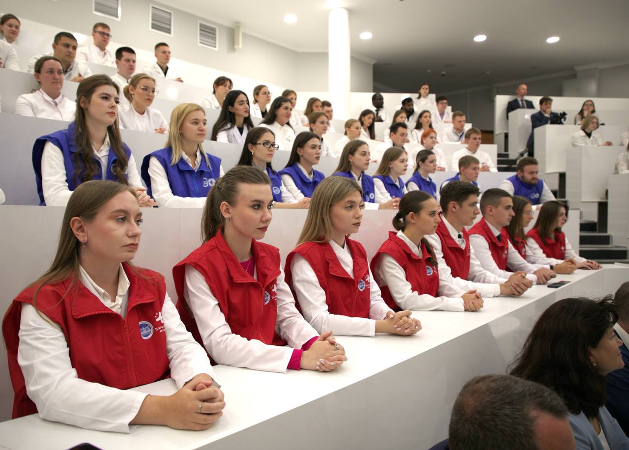 Студенты-медики — это особая гордость университета. Вы выбрали путь служения людям, путь добра, терпения и милосердия. Ваше призвание — нести здоровье и надежду, а потому в сердце каждого из вас должно жить искреннее сострадание к пациентам.
