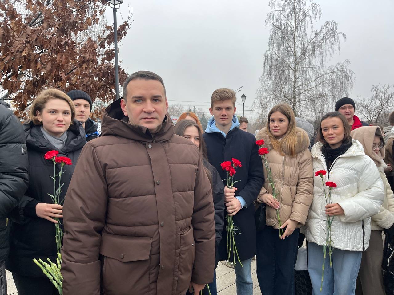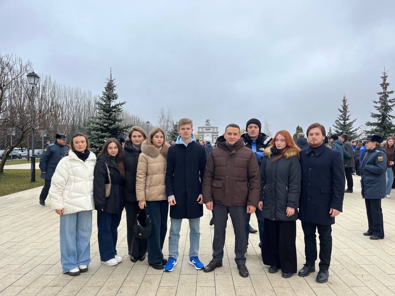 Сотрудники и студенты возложили цветы к Вечному огню на Мемориальном комплексе «Памятник неизвестному солдату», присоединившись к официальной церемонии с участием представителей власти.