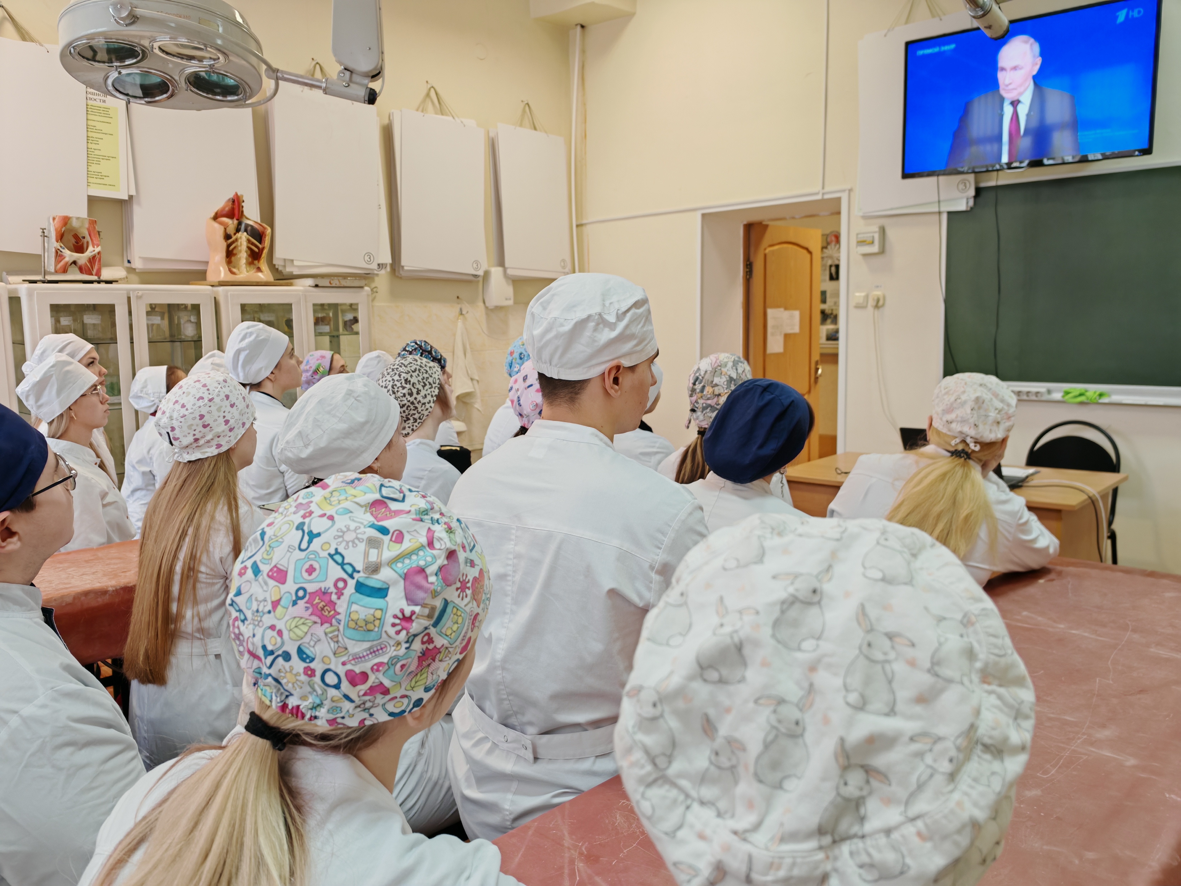 Сегодня вся страна участвует в большом разговоре. Студенты и преподаватели Курского государственного медицинского университета присоединились к просмотру Прямой линии с Президентом России Владимиром Владимировичем Путиным.