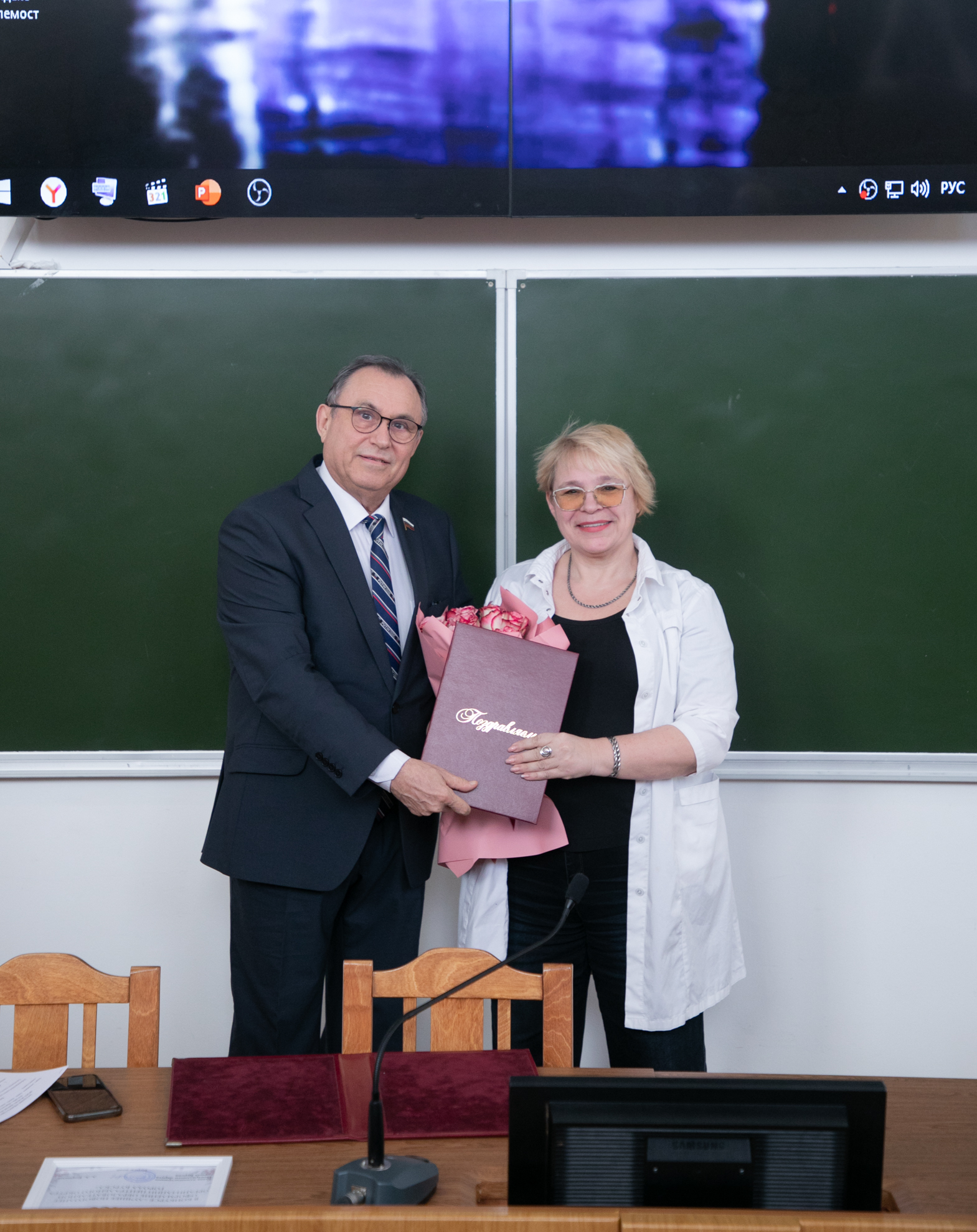 Председатель заседания ректор КГМУ профессор В.А.Лазаренко, по традиции, начал с чествования юбиляров. Собравшиеся тепло поздравили Овод Аллу Ивановну – заведующую кафедрой организации и менеджмента фармации, начальника УМУ, профессора и Будко Елену Вячеславовну - заведующую кафедрой общей и биоорганической химии, доктора фармацевтических наук, профессора.