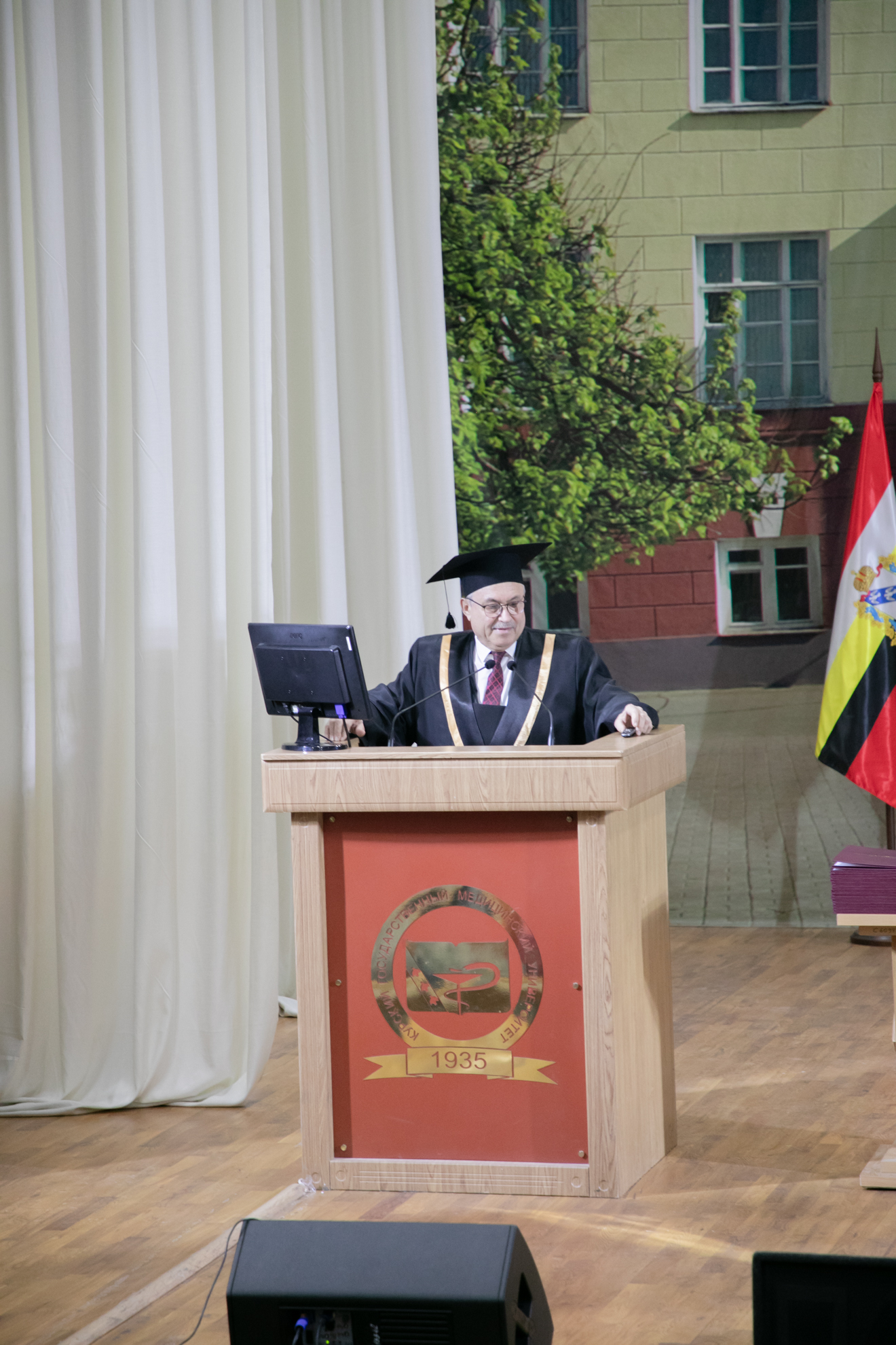 В.А.Лазаренко поблагодарил коллектив и обучающихся за плодотворную работу и поздравил с с 91-ой годовщиной основания Курского государственного медицинского университета, с 83-ой годовщиной освобождения Курска от немецко-фашистских захватчиков и с Днем российской науки.