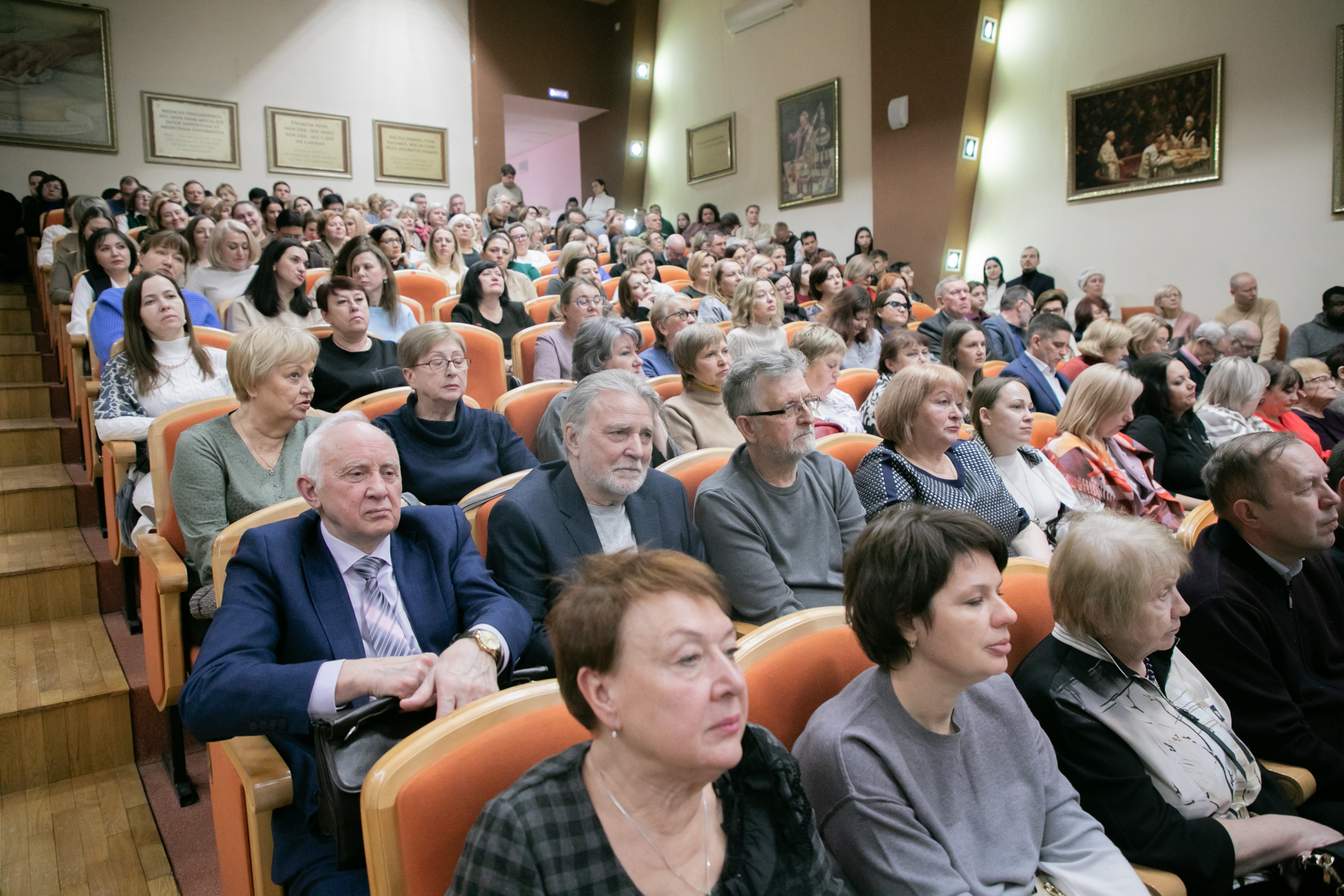 Ректор начал своё выступления с сообщения о награждении Курского государственного медицинского университета орденом Пирогова. Указ о награждении 28 января 2026 года подписал Президент РФ В.В.Путин.