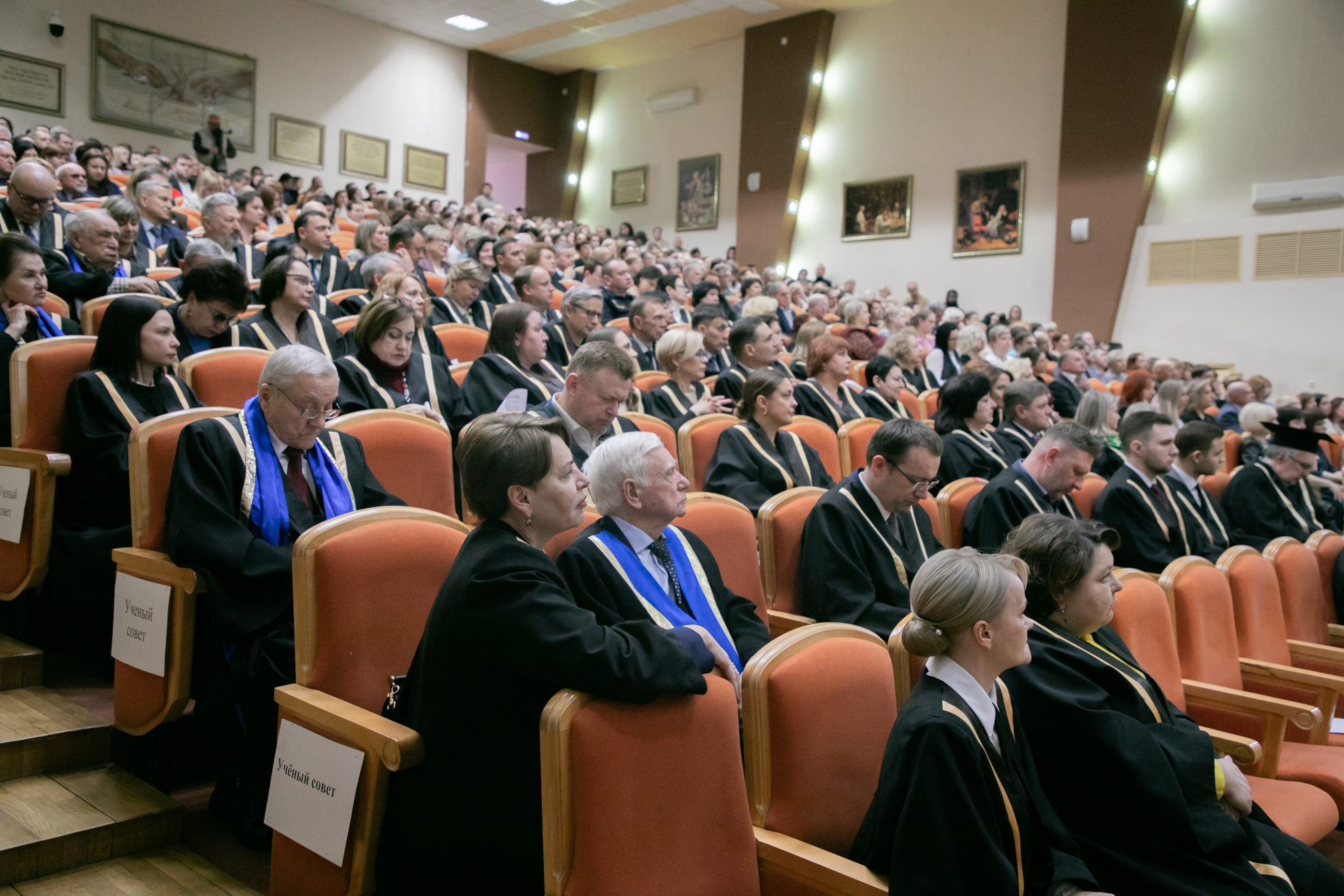 С тёплыми поздравлениями с трибуны к собравшимся обратился Глава города Курска, выпускник КГМУ Маслов Е.Н., вслед за чем учёный совет перешёл к основному вопросу повестки дня, Актовой речи «Сердечно-сосудистый риск после пандемии COVID 19: наш ответ на новые вызовы болезни», которую произнёс д.м.н., профессор, заведующий кафедрой внутренних болезней № 2 КГМУ Михин В. П.