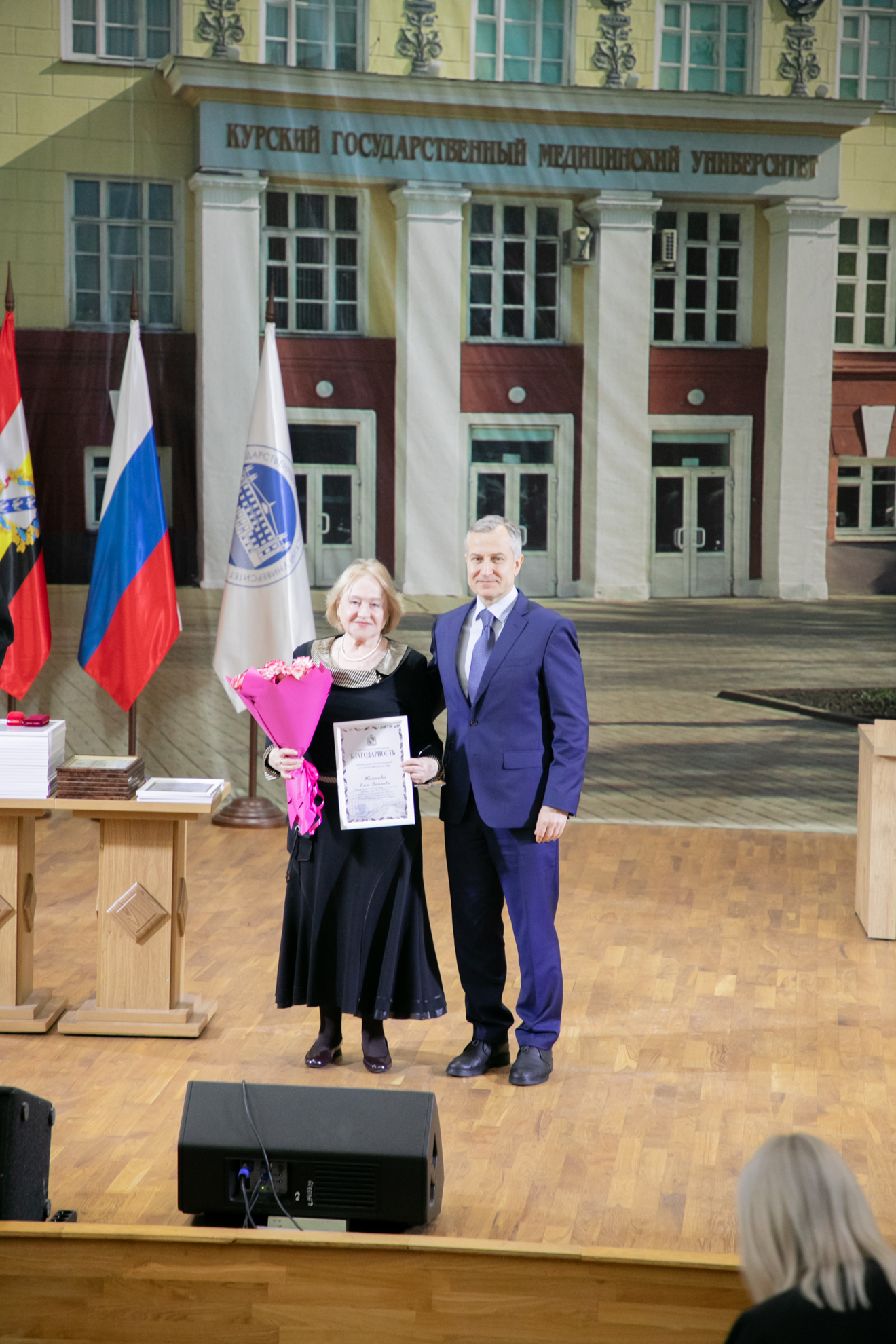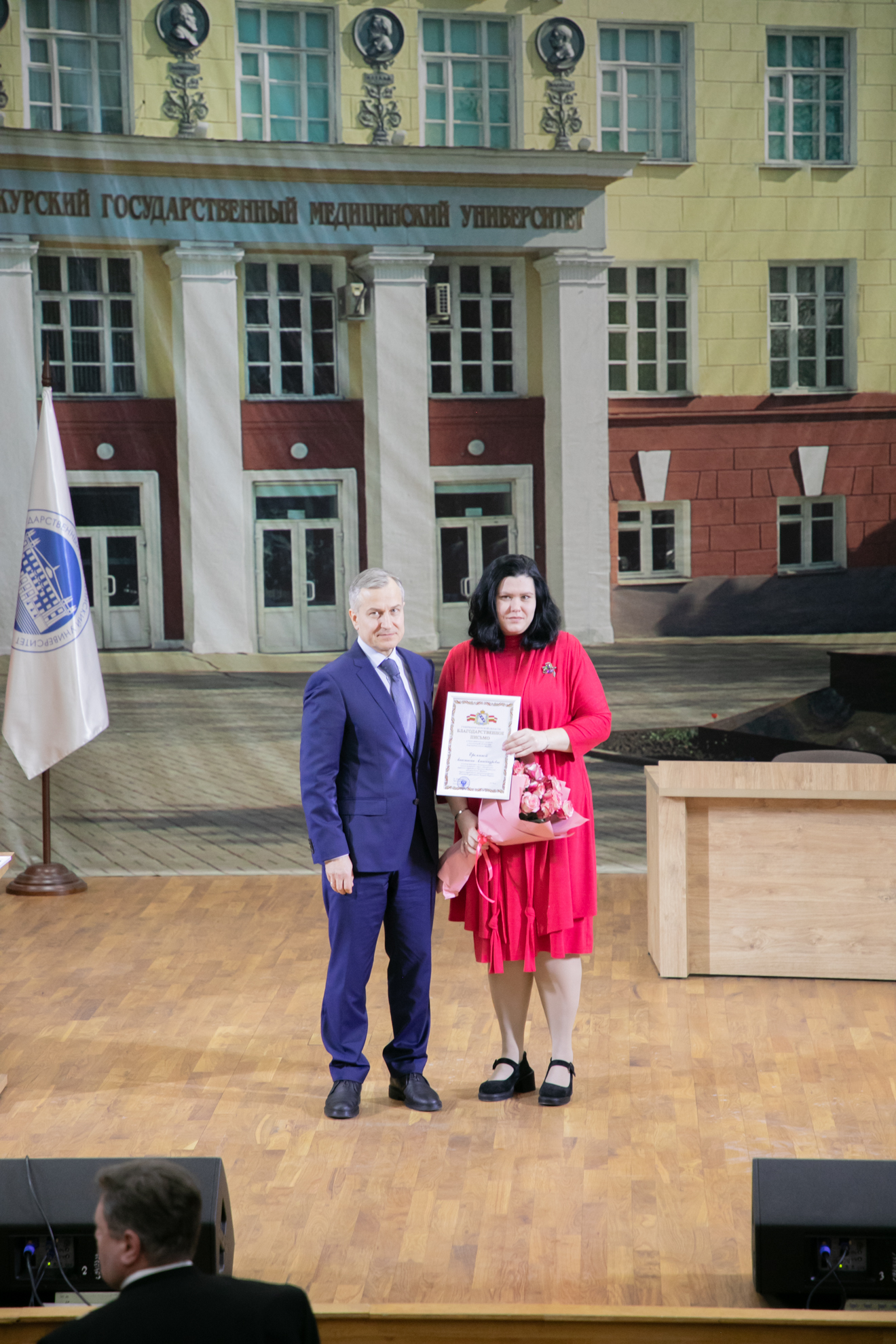 Почётных грамот Администрации Курской области были удостоены: Бабкина Л. А. - доцент кафедры биологии, медицинской генетики и экологии, Ерофеева Е.В.- ассистент кафедры сестринского дела, Навоев Н. Н.- инженер по ремонту эксплуатационно-технического отдела и Примакова О. В.- ассистент кафедры спортивной медицины и лечебной физкультуры.