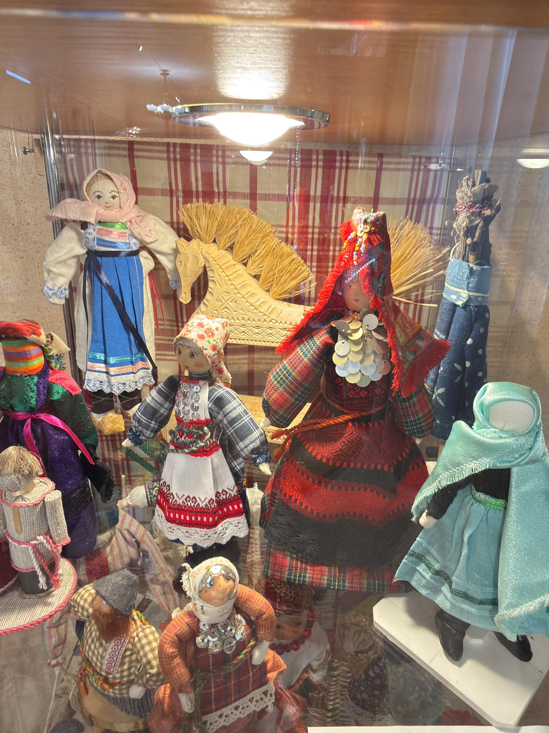 Проходя между витринами, студенты оживлённо обсуждали, как по-разному народы воплощают свои традиции в, казалось бы, простой игрушке. Вот – изящные японские куклы в шёлковых одеждах, вот – яркие, залитые солнцем, куклы из Камеруна, а вот и узнаваемые узоры на костюмах кукол Курского края. Особый трепет вызвали экспонаты из их родных стран.