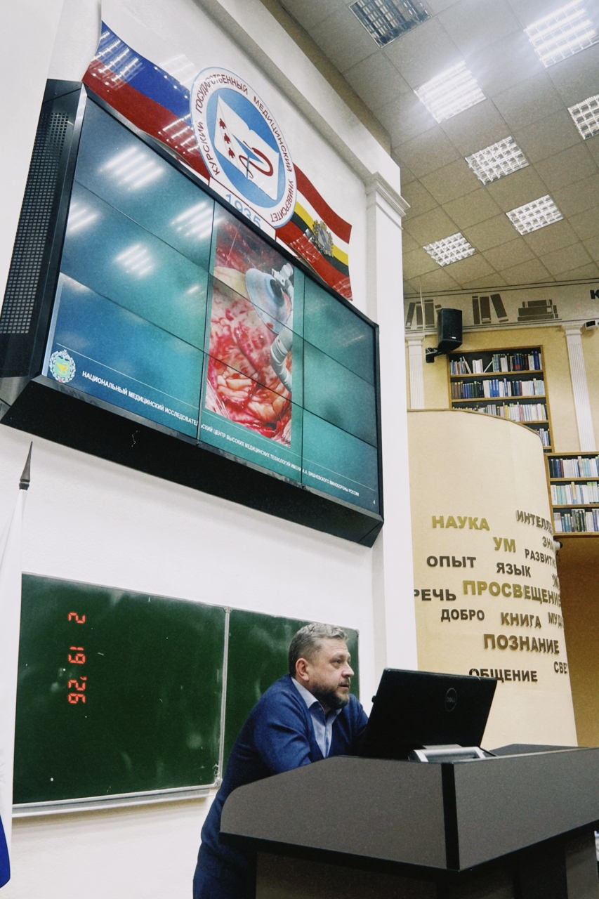 Главным гостем стал Алексей Николаевич Колтунов - выпускник лечебного факультета КГМУ, врач-сердечно-сосудистый хирург, к.м.н., заведующий 36 кардиохирургическим отделением федерального государственного бюджетного учреждения «Национальный медицинский исследовательский центр высоких медицинских технологий - Центральный военный клинический госпиталь имени А.А. Вишневского» Министерства обороны Российской Федерации.