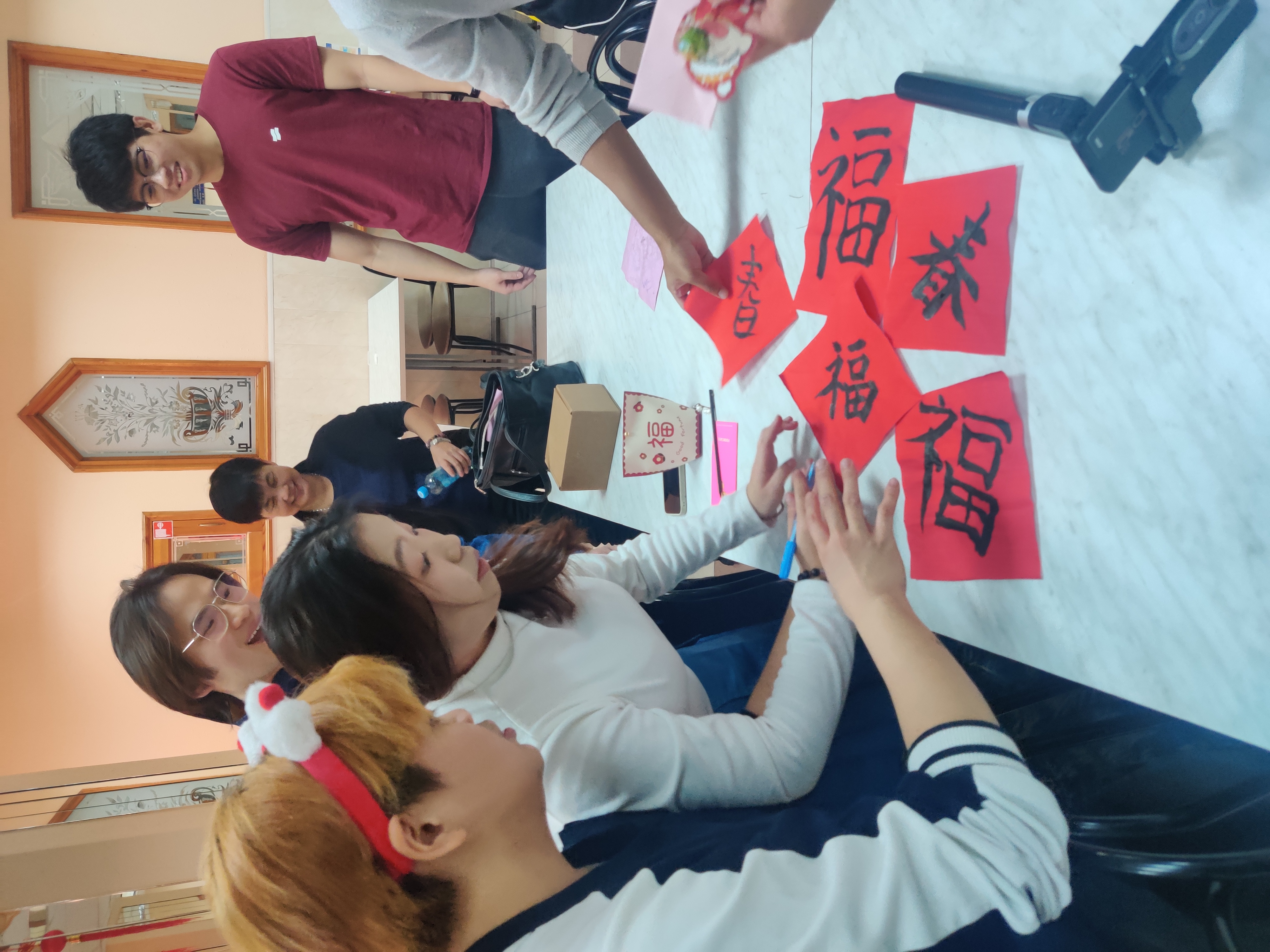 Малазийские студенты постарались сделать мероприятие интересным и незабываемым для всех. Особенно впечатлил конкурс на лучший иероглиф на красной папирусной бумаге. Участники пробовали свои силы в китайской каллиграфии. Каждый желающий изображал иероглиф — например, «счастье» (福), «удача» (运) или «радость» (乐).
