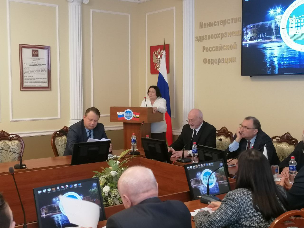Открыл конференцию ректор, заслуженный врач Российской Федерации, заслуженный деятель науки Российской Федерации, почетный гражданин города Курска, д.м.н., профессор В.А. Лазаренко. Виктор Анатольевич отметил выдающиеся заслуги своего учителя профессора А.Д. Мясникова перед отечественным здравоохранением, вклад Альберта Дмитриевича в научную работу университета.