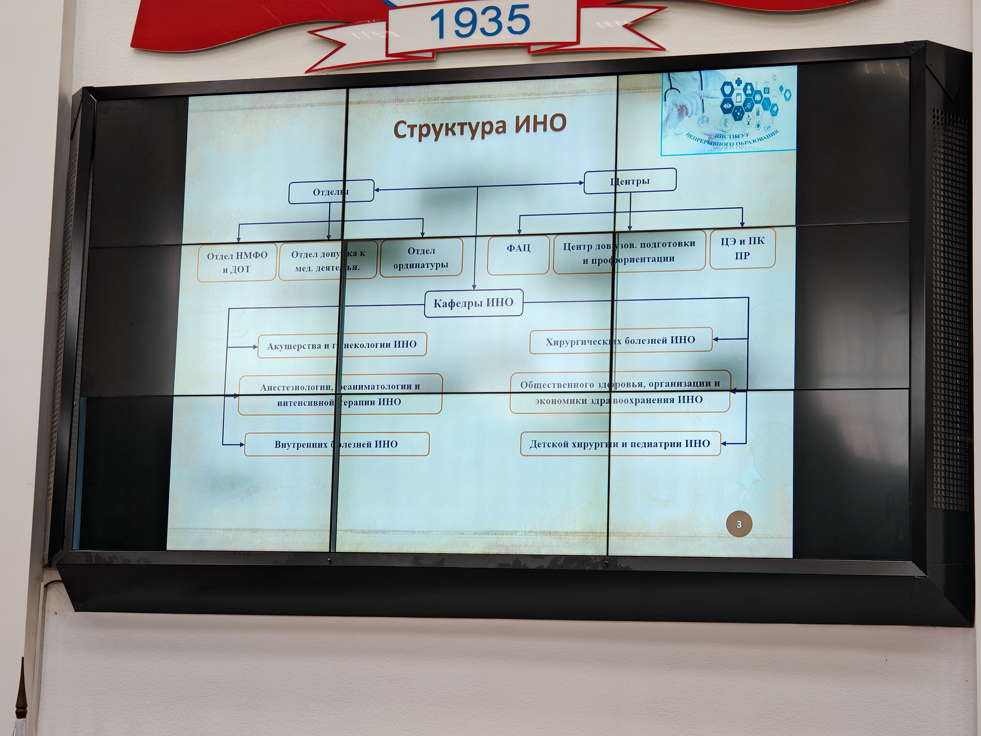 Следующим вопросом повестки дня стал отчёт о работе Института непрерывного образования (ИНО) за 5 лет. Директор ИНО доцент Лексо Лорикович Квачахия рассказал совету, что за последние 5 лет деятельность ИНО отмечена значительными успехами, и это - несмотря на серьёзную конкуренцию в этой сфере, обусловленную наличием большого количества (более 2300 единиц) коммерческих организаций, которым разрешена указанная деятельность. ИНО осуществляет большой объем довузовской подготовки, обучает ординаторов в условиях практического здравоохранения, повышает квалификацию и профпереподготовку медицинских, фармацевтических и педагогических работников, выполняет другие задачи. В 2025 году "география" слушателей ДПП ПК и ПП составила 54 субъекта РФ, более половины слушателей - из Курской области. В структуру ИНО входит 3 центра и 3 отдела, а также - 6 кафедр. Федеральный аккредитационный центр, входящий в ИНО, имеет III (высший ) уровень аккредитации, который присвоен соответствующей комиссией в 2025 году.