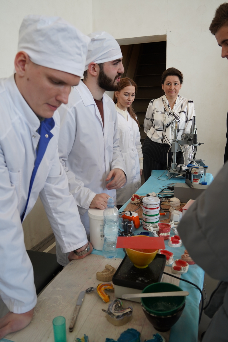 После основной части школьников ждали интересные интерактивные мастер-классы по всем специальностям колледжа: лабораторная диагностика, лечебное дело, сестринское дело, фармация, стоматология ортопедическая. Они смогла поработать в качестве фармацевтов в учебной аптеке, выполнить манипуляции медицинской сестры. На площадке «стоматология ортопедическая» - попробовать сформировать зубы и отшлифовать их. Большой интерес и у родителей и у школьников вызвала площадка с медицинским массажем, где были продемонстрированы все имеющиеся приспособления к выполнению этой лечебной процедуры.