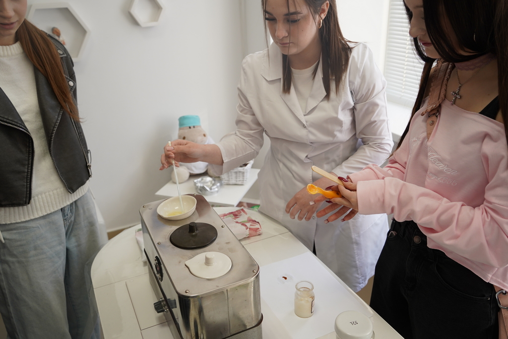 В учебной лаборатории школьникам показали, как можно проверить уровень нитратов в продуктах, поработать с электронным микроскопом. Родителей познакомили с историей колледжа, материально-техническим оснащением.