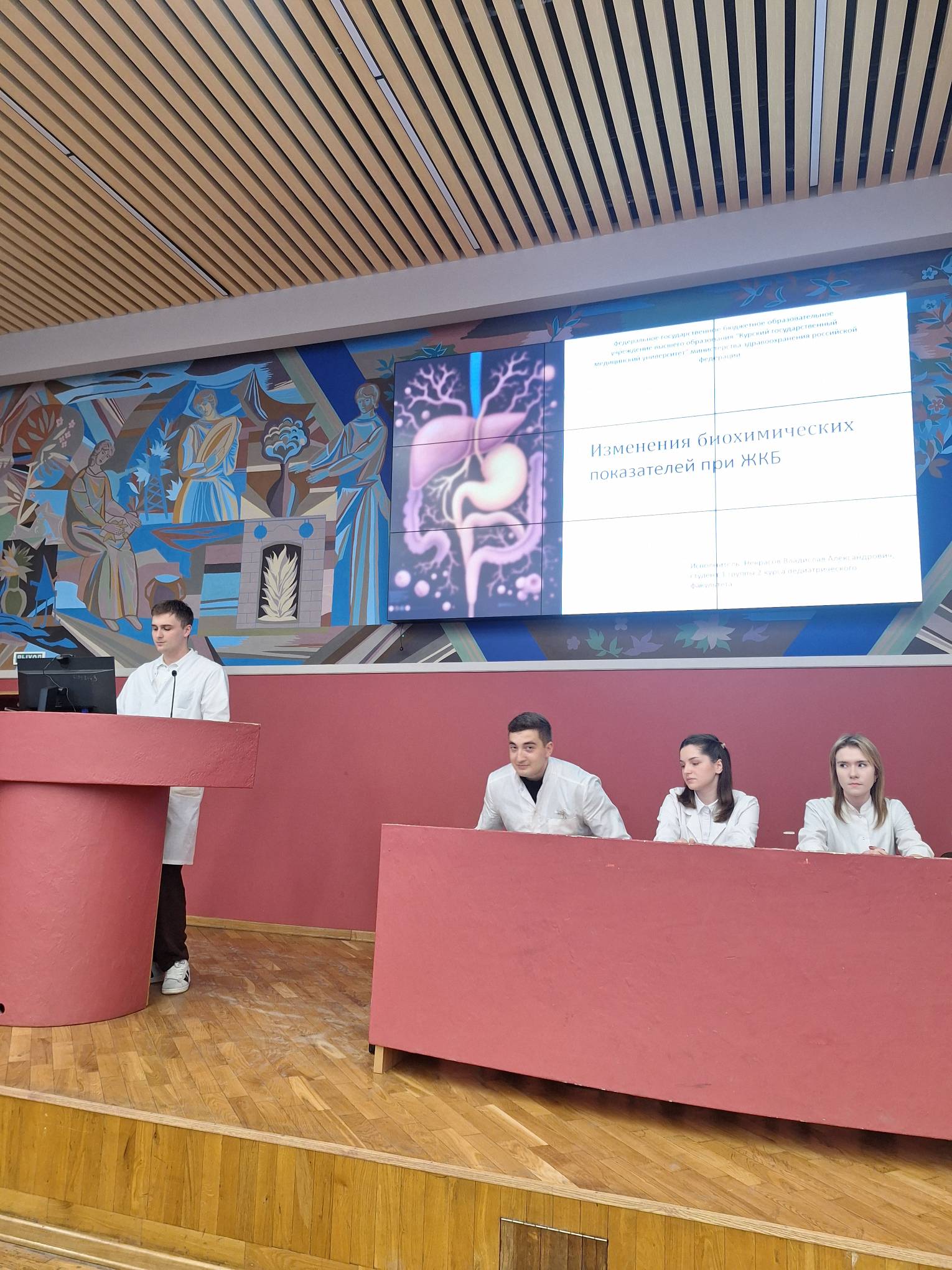 1 апреля 2026 года состоялось междисциплинарное заседание СНК кафедры пропедевтики внутренних болезней совместно с кафедрами общей хирургии, микробиологии, вирусологии, иммунологии и биологической химии на тему: «Этиологические факторы и клинико-диагностическая характеристика желчекаменной болезни и холецистита.