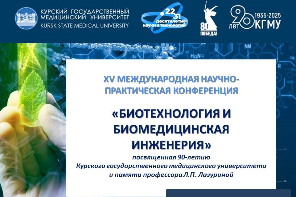 28 ноября 2024 года на кафедре биологической и химической технологии КГМУ состоится XIV Всероссийская научно-практическая конференция «Биотехнология и биомедицинская инженерия» с международным участием, посвященная 89-летию Курского государственного медицинского университета.