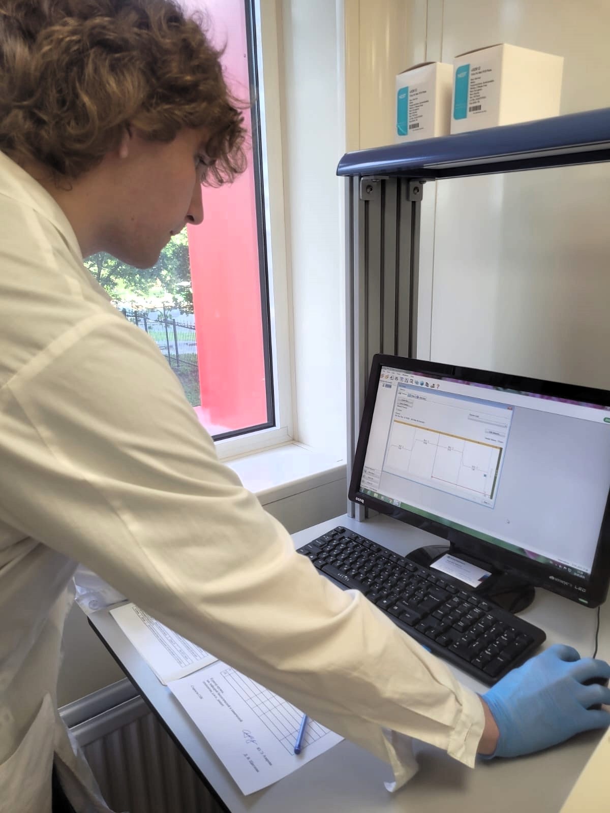 On May 23, 2025, a practical meeting of the student scientific society of the Department of Biological and Chemical Technology on the topic "Methods of Human DNA Sequence Analysis" was held at the Research Institute of Genetic and Molecular Epidemiology under the guidance of Associate Professor Iuliia Eduardovna Azarova. The main focus was on the polymerase chain reaction (PCR), a basic method of genetic research. During the meeting, students learned the theoretical foundations of PCR and performed laboratory work in the form of PCR for discrimination of alleles in the locus of the DNA oxidative damage repair gene MUTYH using 285 DNA samples of healthy individuals from the Research Institute of GME biobank. Biotechnology students Daria V. Shcheglova (2nd year, 1st group), Yana I. Eliseenko (1st year, 1st group) and Ilya I. Konstantinov (2nd year, 1st group) prepared a PCR mix using bidistilled water, PCR buffer, magnesium chloride, a mixture of deoxynucleoside triphosphates, primers and fluorescently labeled probes, DNA polymerase, then the mix was excavated into 3 96-well PCR plates, DNA was added, the plates were sealed, centrifuged, and loaded into Bio-Rad amplifiers. PCR allowed us to identify 45 carriers of the minor allele of the studied single-nucleotide variant, which allowed us to calculate the minor allele frequency – 7.9%. The participants of the meeting received not only theoretical knowledge, but also practical skills necessary to work in future research.