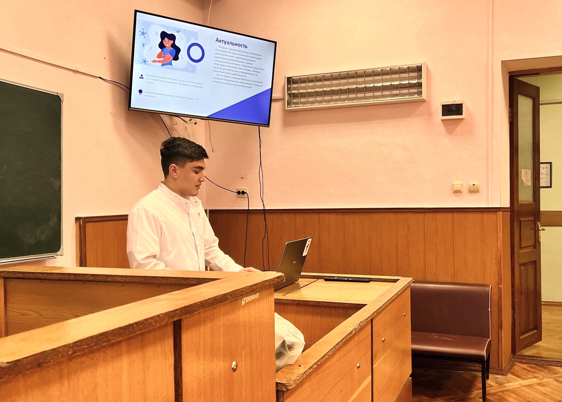- Хатефов Марат Олегович, студент 1 курса, 14 группы лечебного факультета, представил доклад на тему: «Генетические маркеры предрасположенности к псориазу» (Научный руководитель: д.б. н., профессор Солодилова Марня Андреевна)