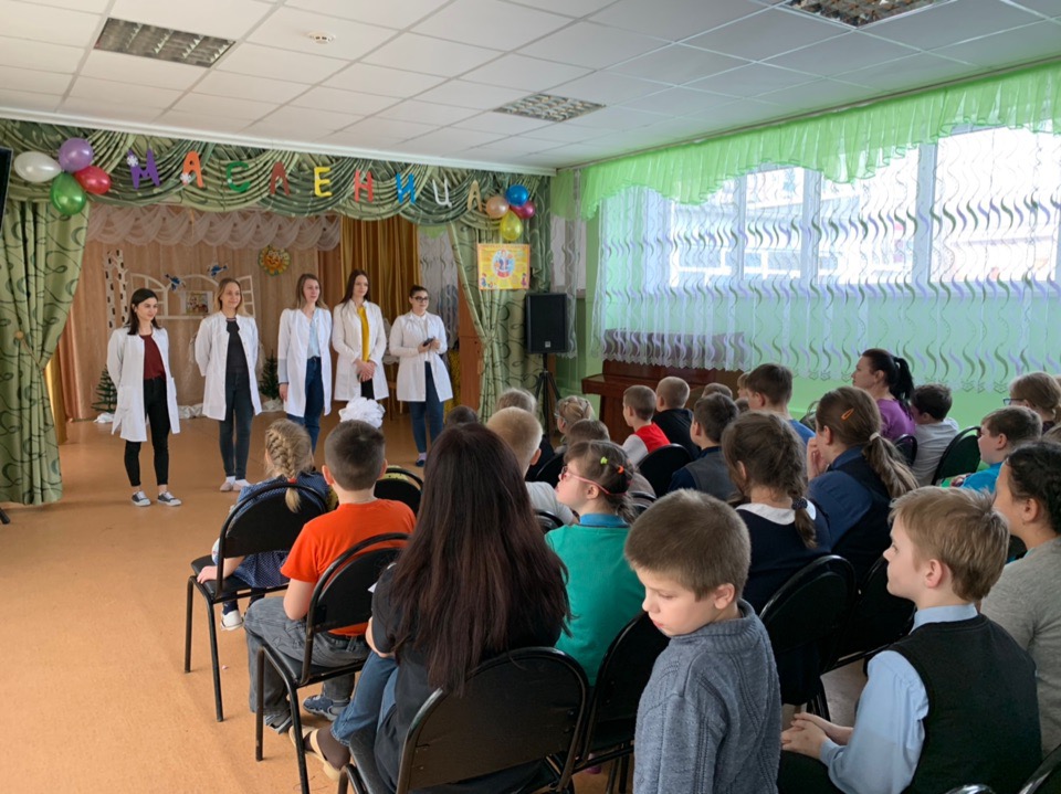 Студенческий Совет КГМУ совместно с волонтерами отряда "Подари радость" провели детский утренник на базе ОКОУ "Школа-интернат №5" г. Курска в рамках масленичной недели КГМУ . Студенты познакомили детей с традициями и обычаями старинного русского праздника ,в игровой форме рассказали много новых фактов о временах года, а также провели различные активности в заданной тематике.В конце утренника воспитанники интерната получили угощения в виде блинов.