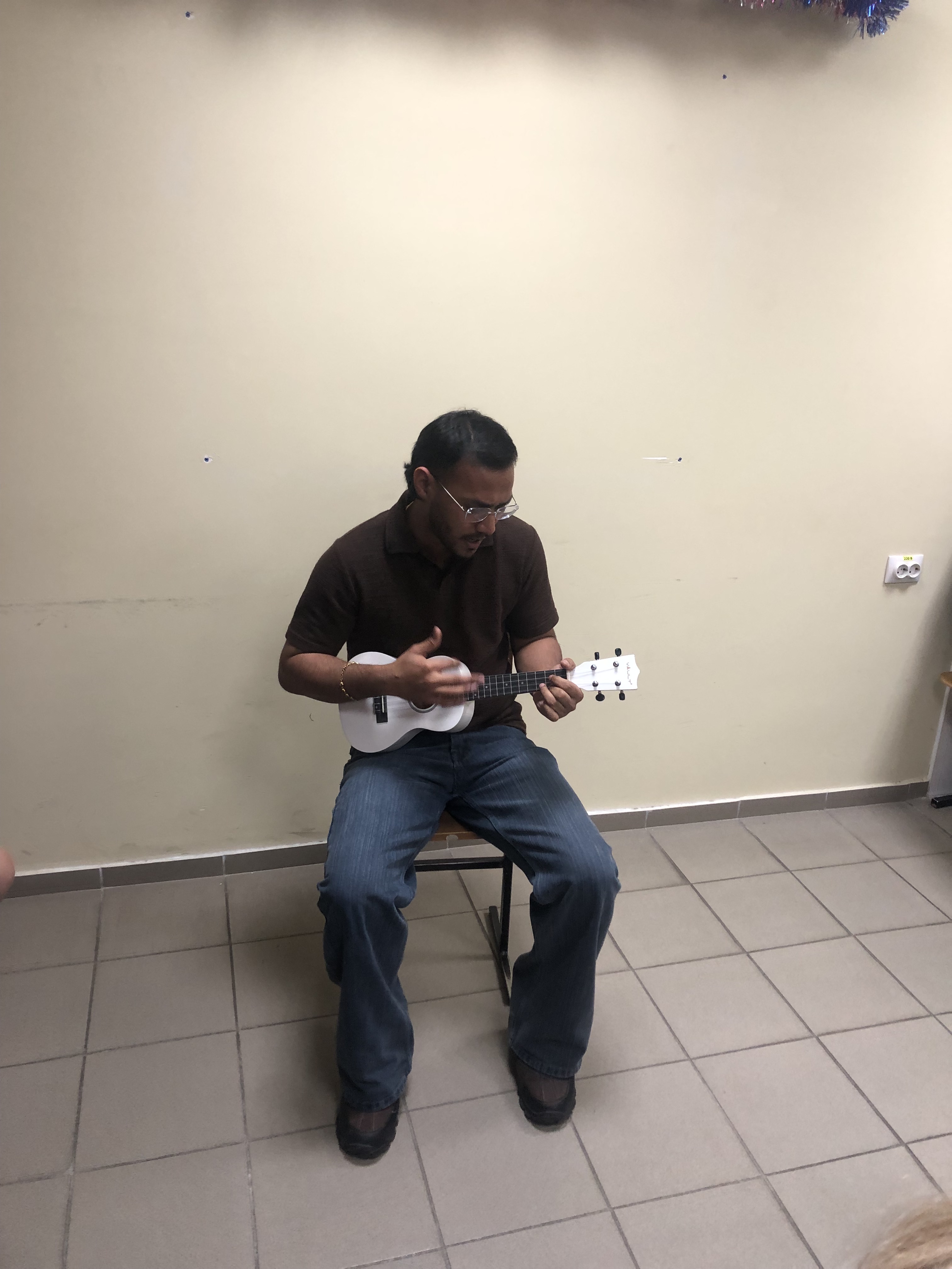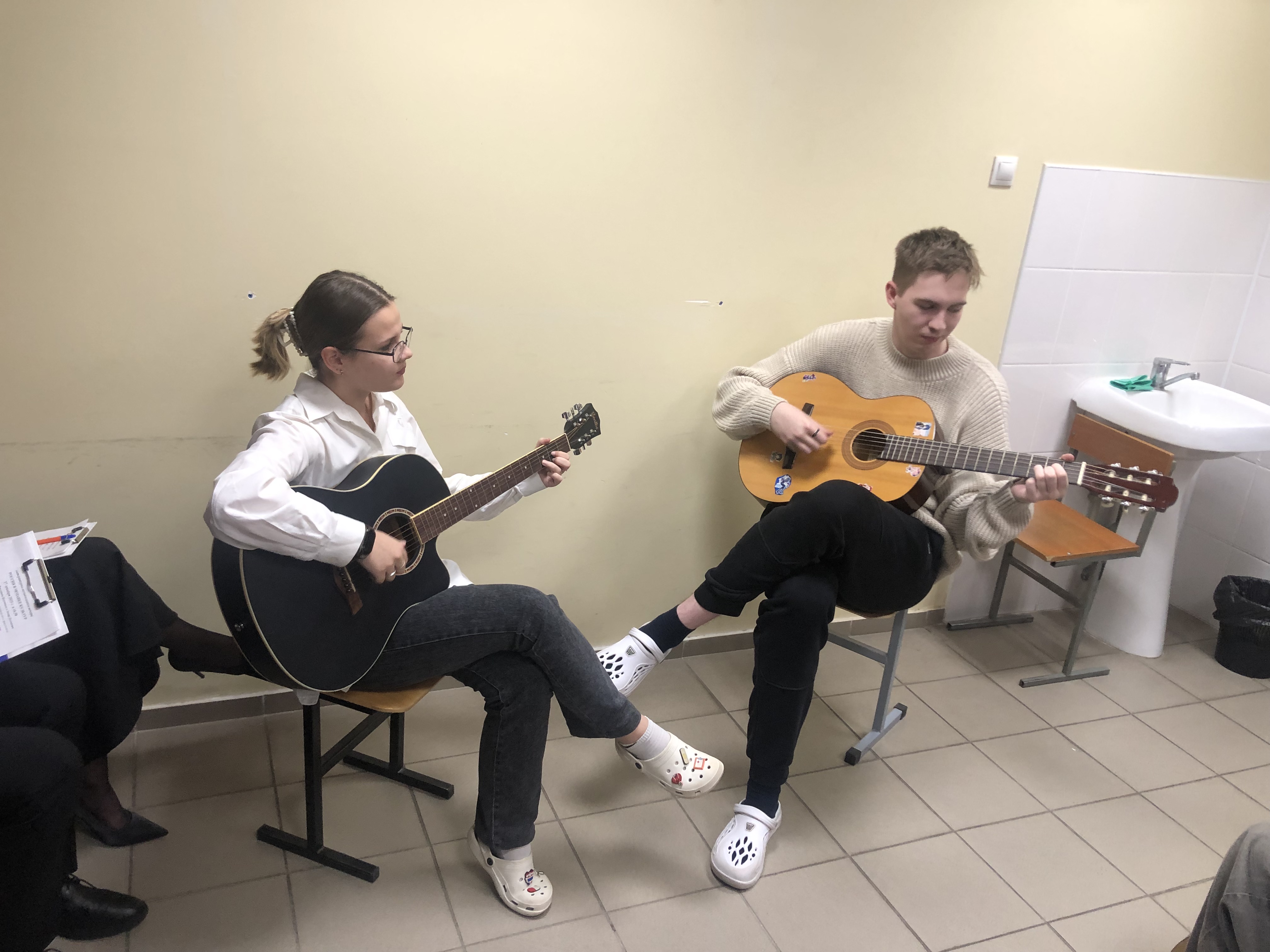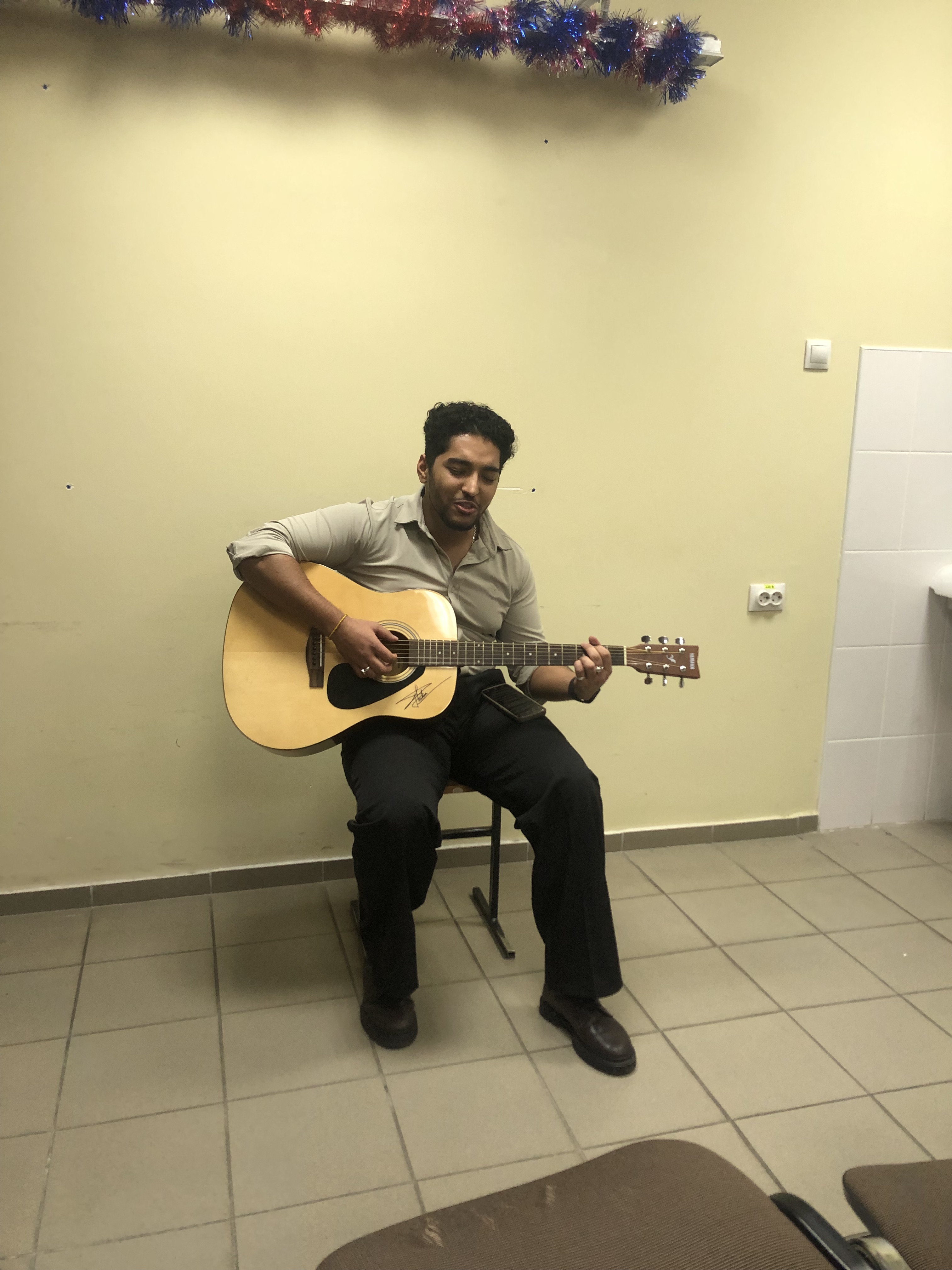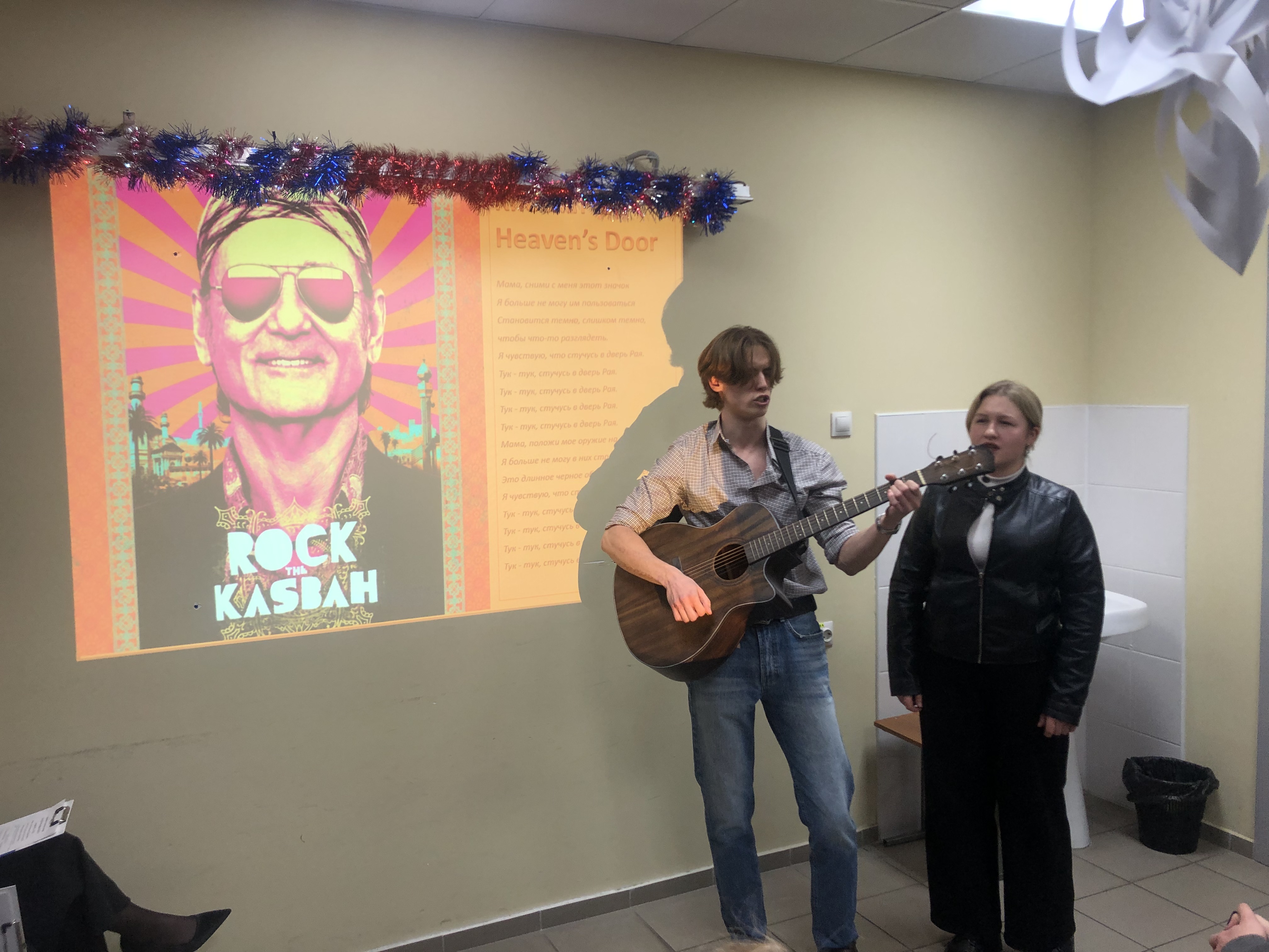 Конечно же, звучали и песни на русском языке, представленные постоянными участниками таких вечеров – студентами 2 группы педиатрического факультета Анной Булатовой, Даниилом Минаковым, Яной Сенчук. В конце вечера участники вместе исполнили еще одну любимую песню «Выйду ночью в поле с конем», после которой студенты 6 группы 2 курса педиатрического факультета выступили – при поддержке всего зрительного зала – с песней Басты «Сансара».
