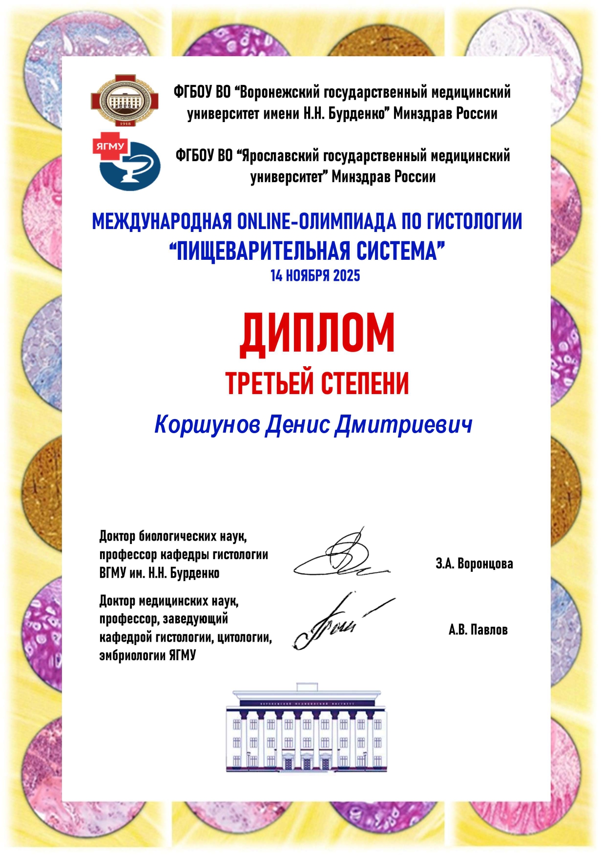 (10-15 ноября 2025 г., Воронеж, ВГМУ им. Н.Н. Бурденко). В рамках ФОРУМА состоялась Online-олимпиада по гистологии «Пищеварительная система».