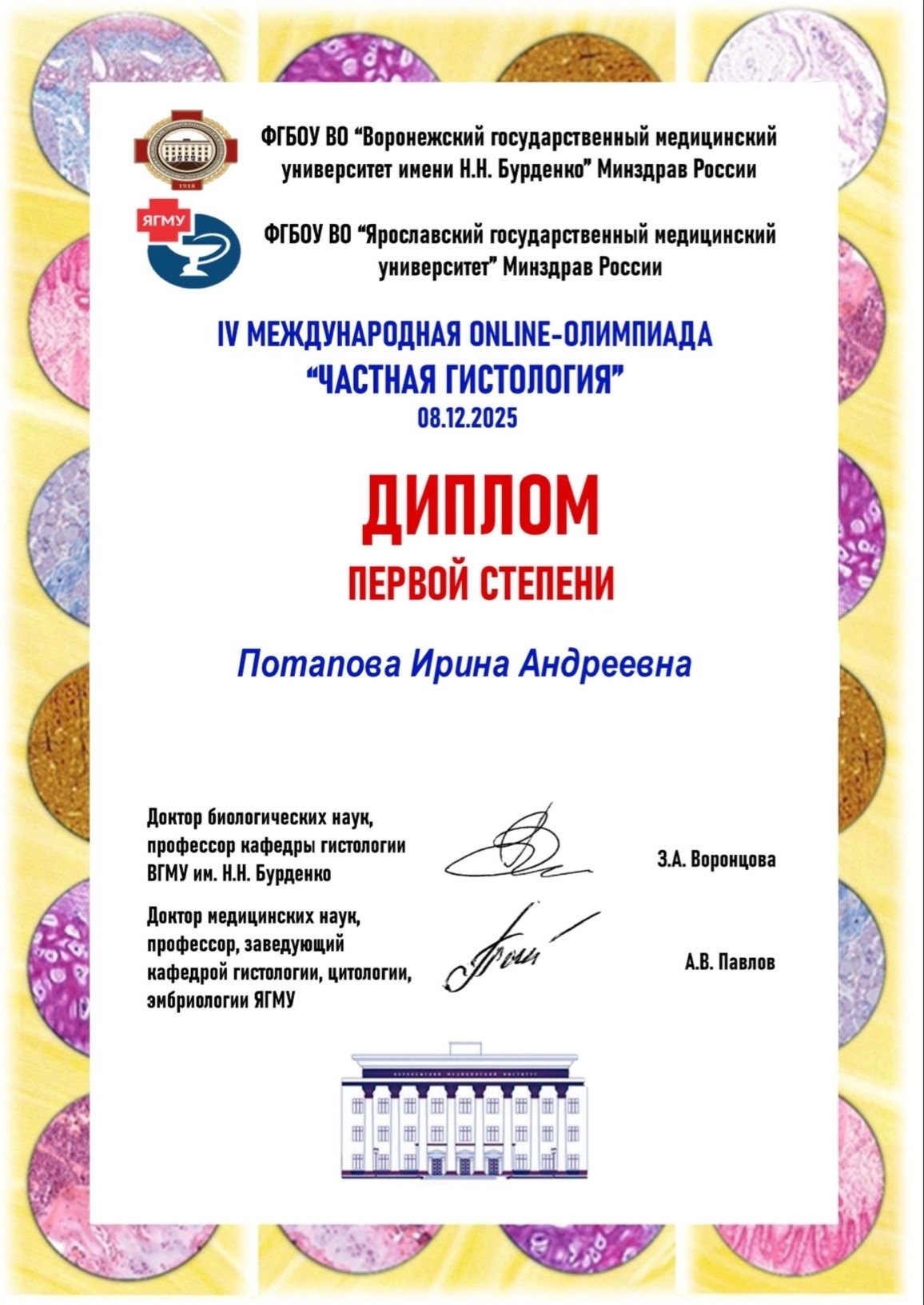 Это самая популярная олимпиада по гистологии в нашей стране! Организаторы олимпиады: Воронежский государственный медицинский университет им. Н.Н. Бурденко и Ярославский государственный медицинский университет.