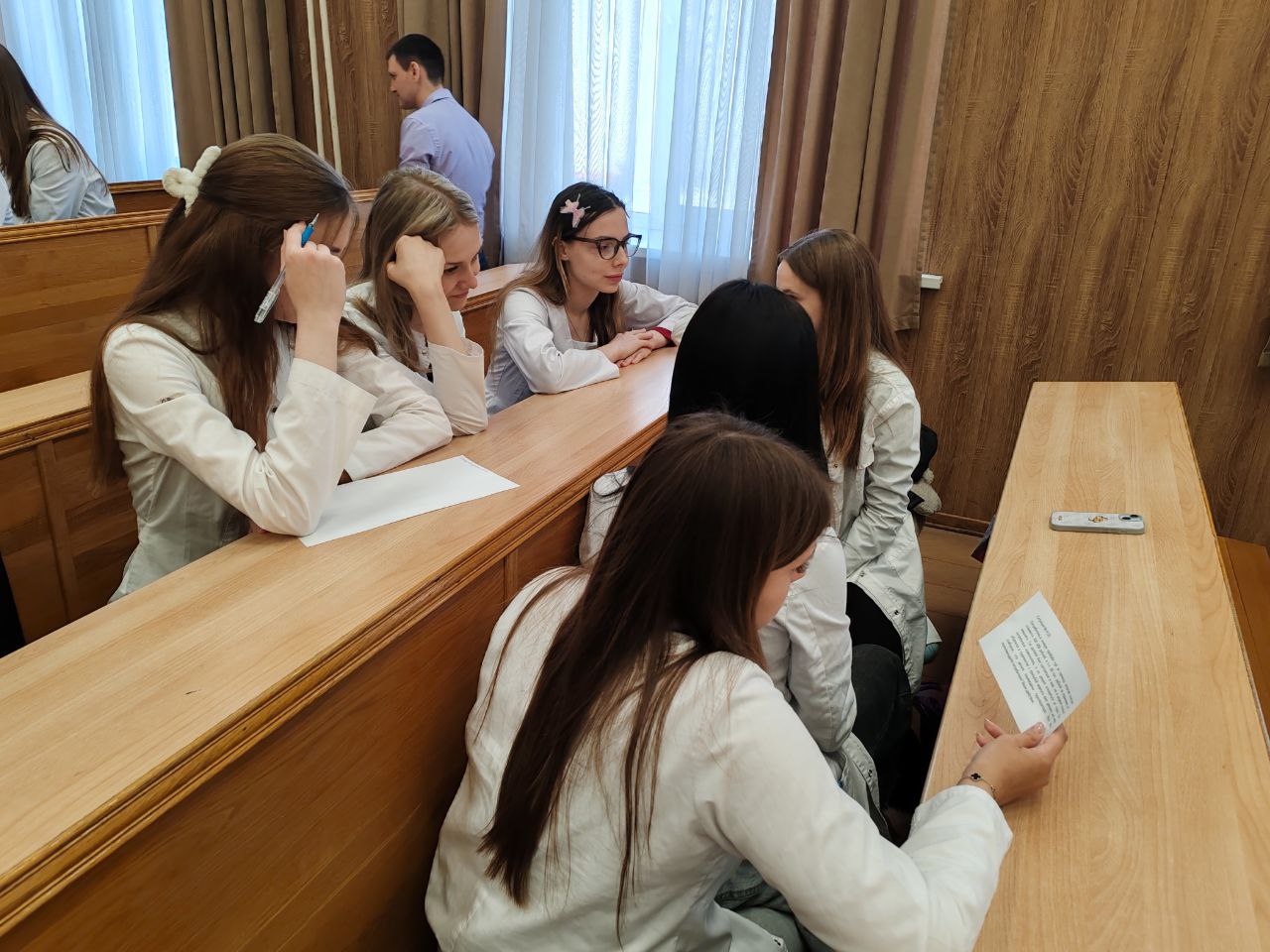 На кафедре общей гигиены 13 марта 2026 г. в преддверии Всемирного дня защиты прав потребителей прошла необычная деловая игра. В этот раз участниками образовательного процесса стали сразу два курса факультета медико-профилактического дела. Первокурсники выступили в роли потребителей, столкнувшихся с различными сложными ситуациями при покупке товаров или заказе услуг. Их консультантами стали студенты 6 курса, которые отлично справились с ролью специалистов Роспотребнадзора.Экспертами игры и модераторами выступили заведующая кафедрой общей гигиены, доцент О.М.Шепелева и приглашенный специалист — заведующий консультационным центром защиты прав потребителей ФБУЗ «Центр гигиены и эпидемиологии в Курской области»