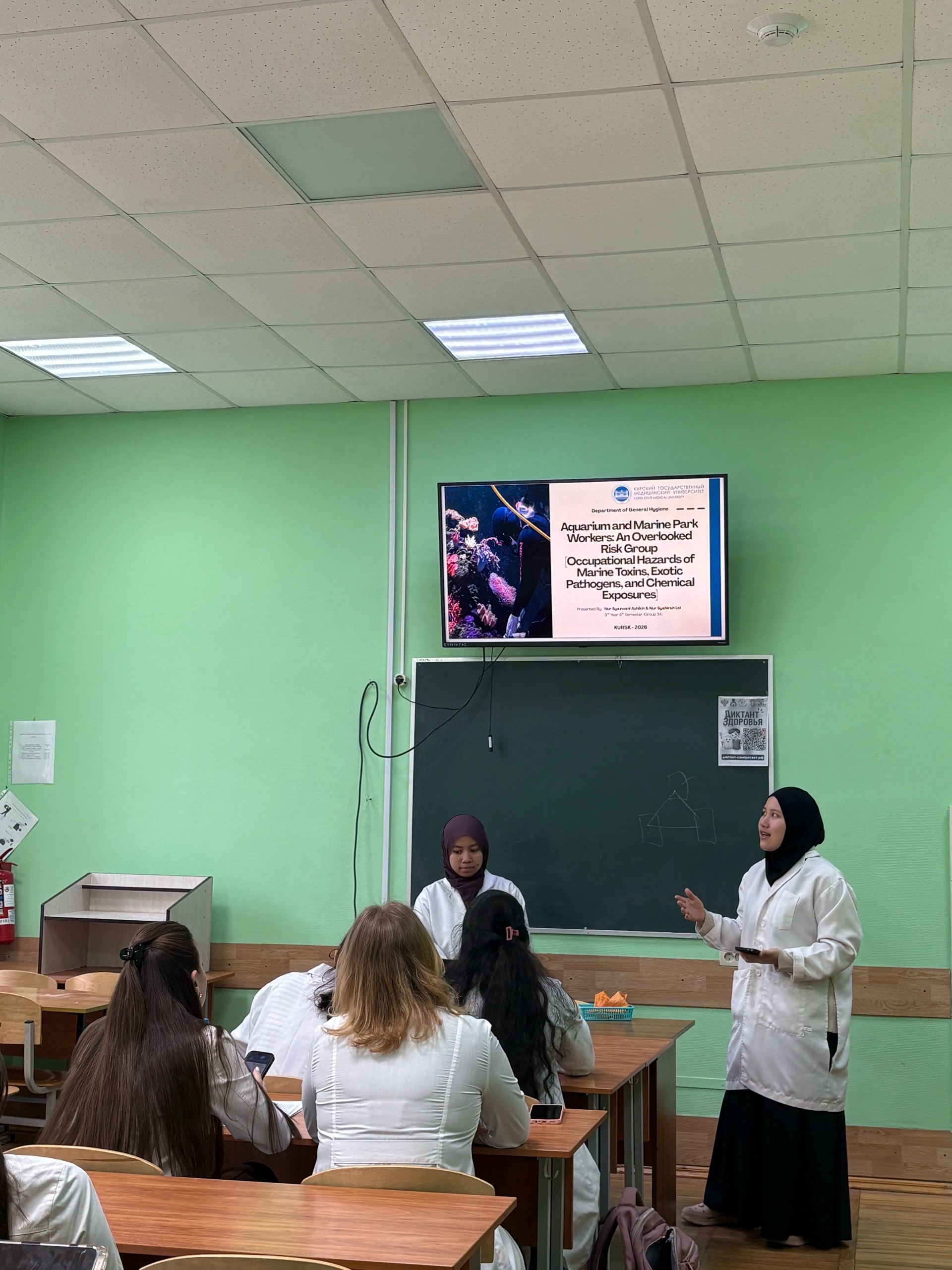 Особый интерес вызвали доклады студентов 3 курса Международного института, которые расширили привычные рамки гигиены. Ребята рассказали о тонкостях работы бариста (риск травм кисти и влияние кофейной пыли), а также о редких, но тяжелых условиях труда дайверов и сборщиков чая. Мероприятие подчеркнуло важность междисциплинарного подхода к сохранению здоровья в самых разных уголках мира и сферах деятельности.