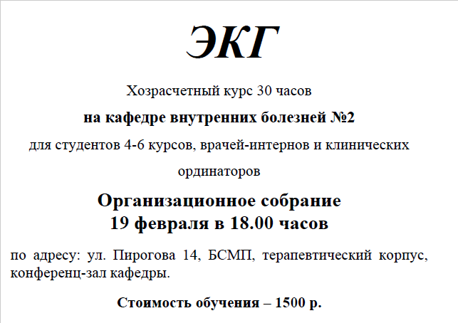 ЭКГ, хозрасчетный курс. ВНИМАНИЕ, дата изменена.