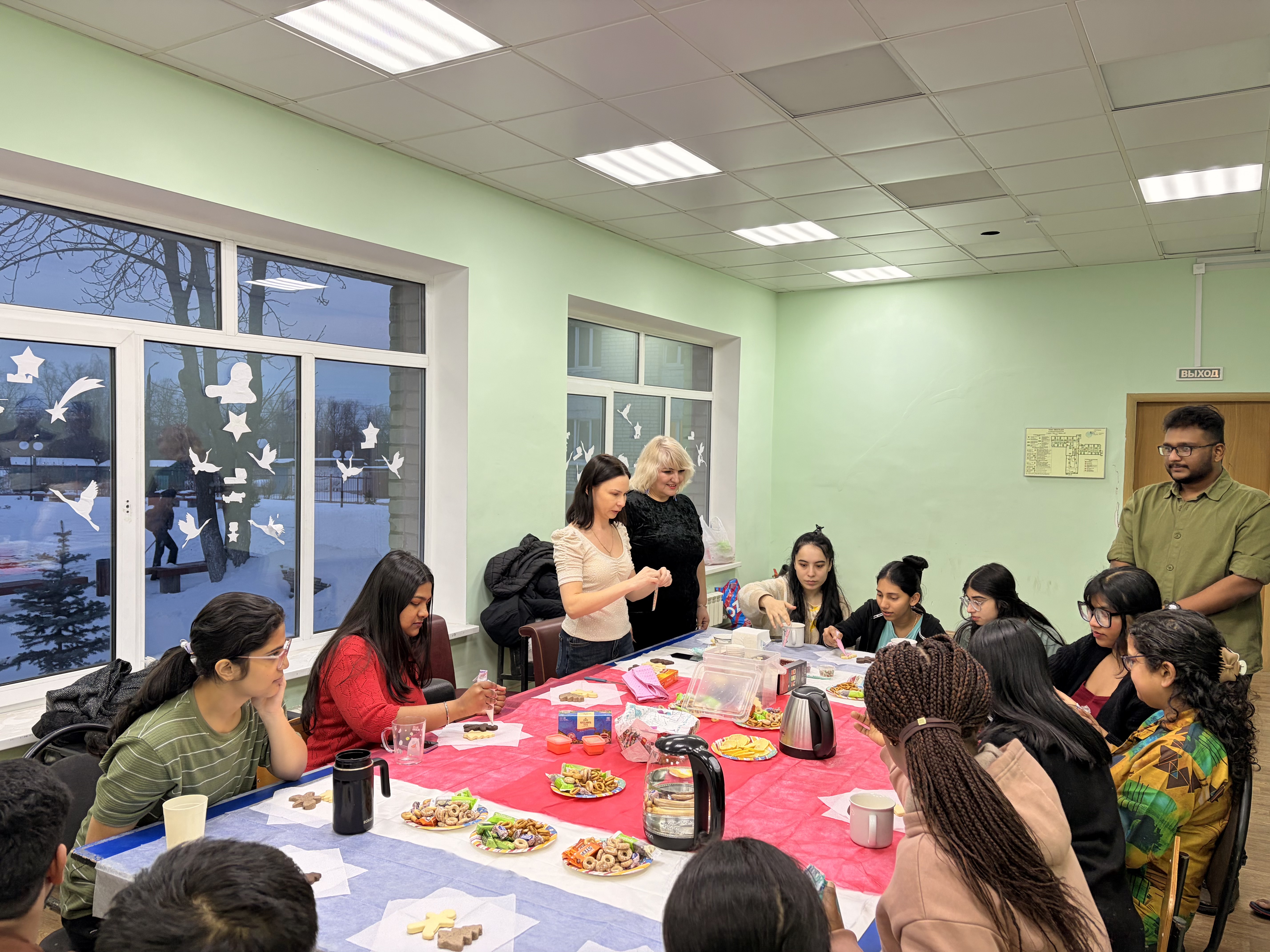 В новогодний вечер иностранные студенты из Индии, Шри-Ланки, Ганы, Узбекистана собрались вместе, чтобы прекрасно провести время.