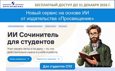 ОТКРЫТ БЕСПЛАТНЫЙ ДОСТУП К СЕРВИСУ "ИИ СОЧИНИТЕЛЬ" ДЛЯ СТУДЕНТОВ СПО