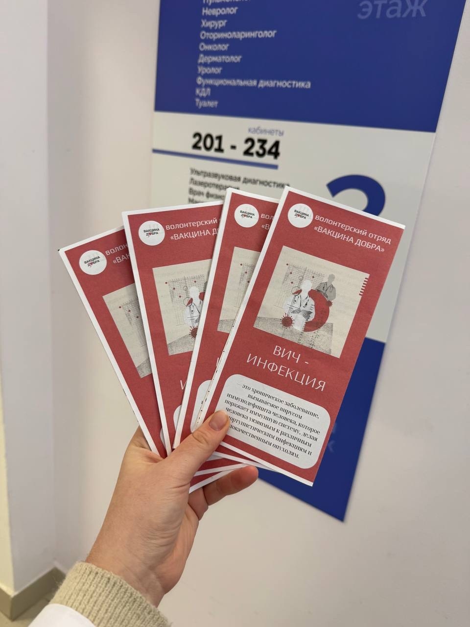 ВОЛОНТЁРЫ ОТРЯДА «ВАКЦИНА ДОБРА» ПРОВЕЛИ ПРОФИЛАКТИЧЕСКУЮ АКЦИЮ В ПОЛИКЛИНИКЕ №5
