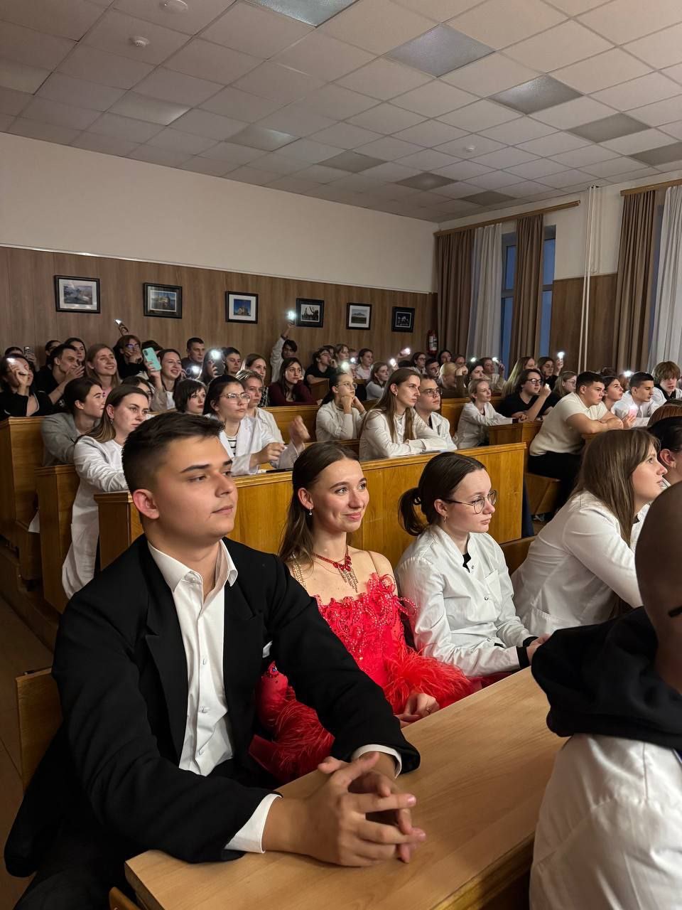 Вечер завершили прекрасные песни «Луч солнца золотого» и «Сансара» в исполнении студентов лечебного и стоматологического факультетов Дарьи Хатюшиной, Иванюк Сергея, Климовой Анны и Титова Максима.