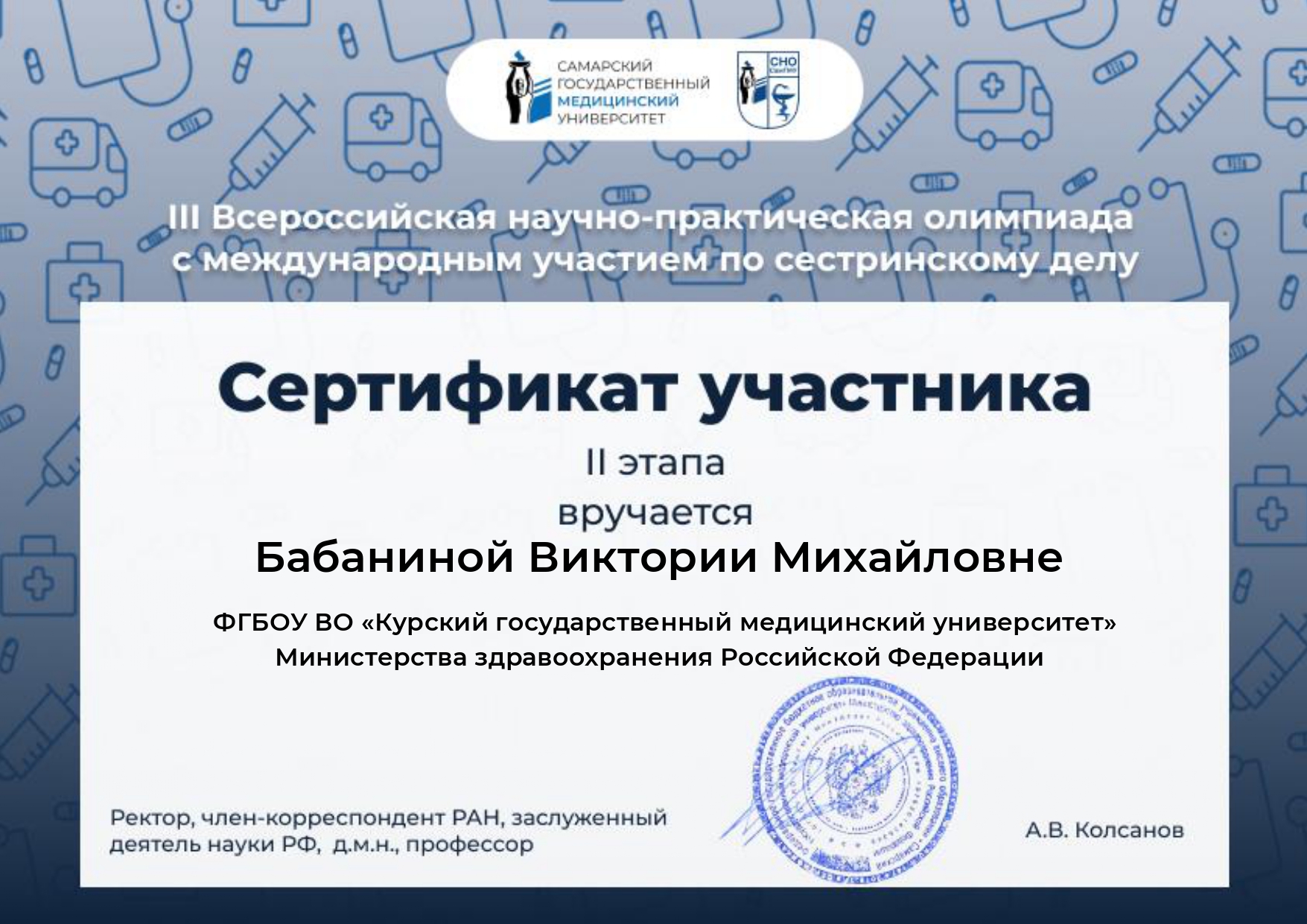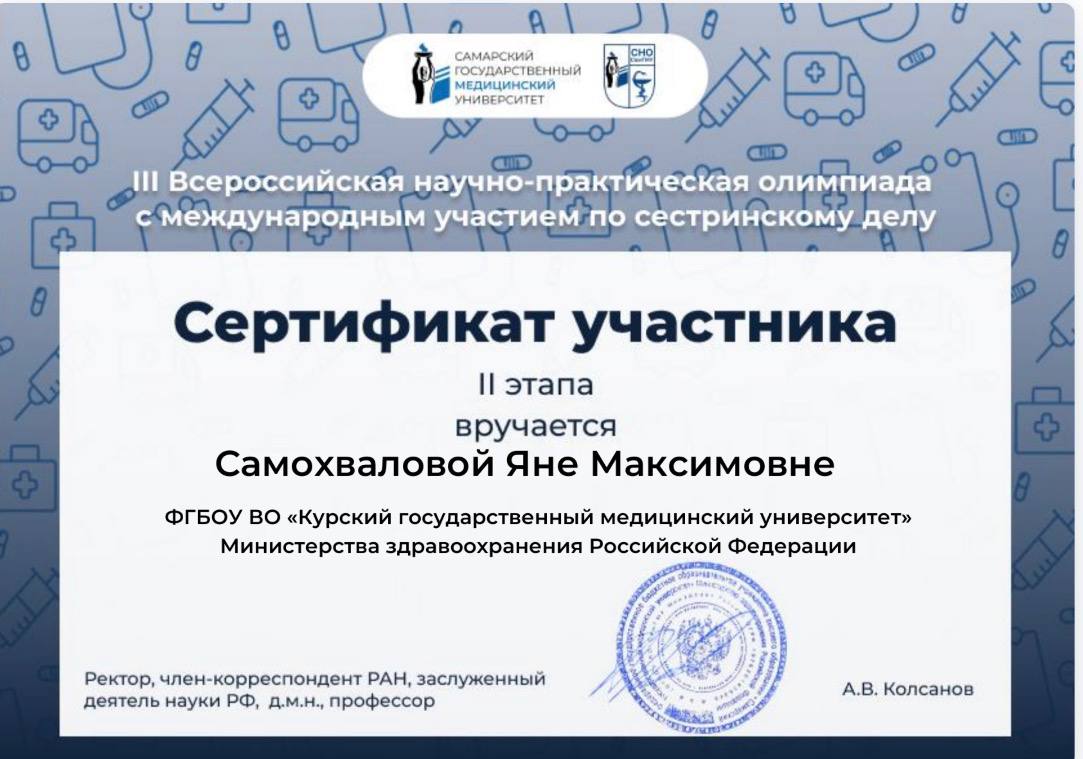 С 20 ноября 2025 года на площадке Самарского государственного медицинского университета в онлайн-формате проходила III Всероссийская научно-практическая олимпиада с международным участием по сестринскому делу.