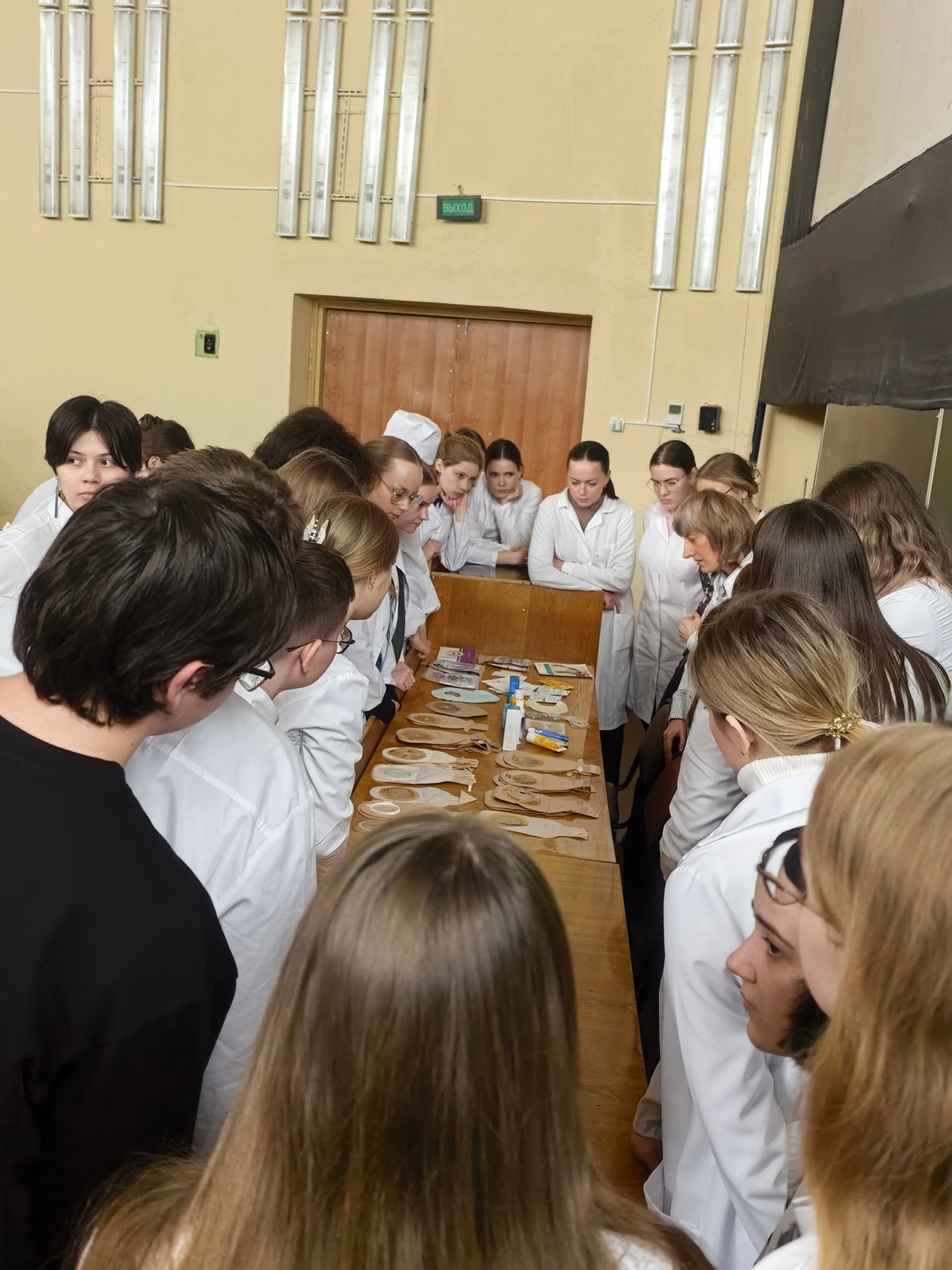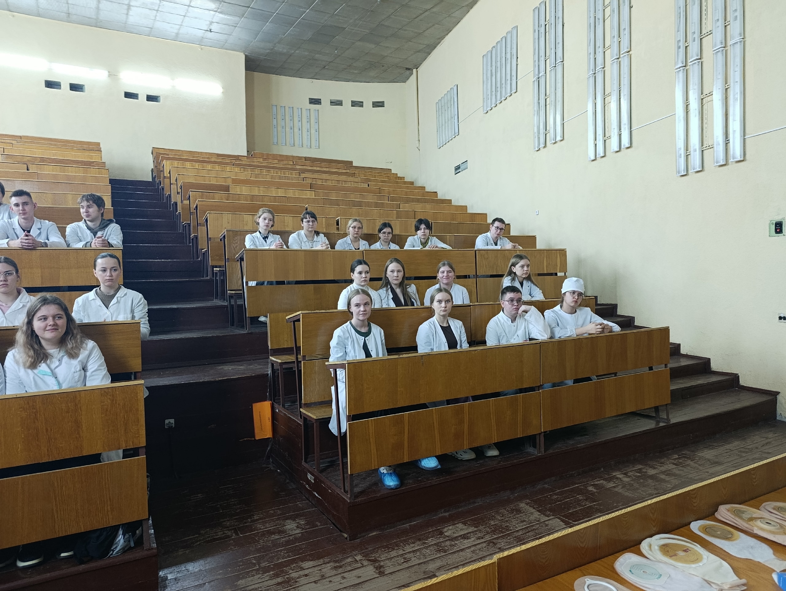 Студентам представилась уникальная возможность поучаствовать в мастер-классе по уходу за стомой. Преподаватели рассказали о видах стом, возможных осложнениях после стомирования, видах калоприемников, а также рассказали о базовых советах стомированным пациентам при уходе за стомой. Участники студенческого кружка смогли познакомиться со всеми элементами, из которых состоит каждый день стомированного человека.