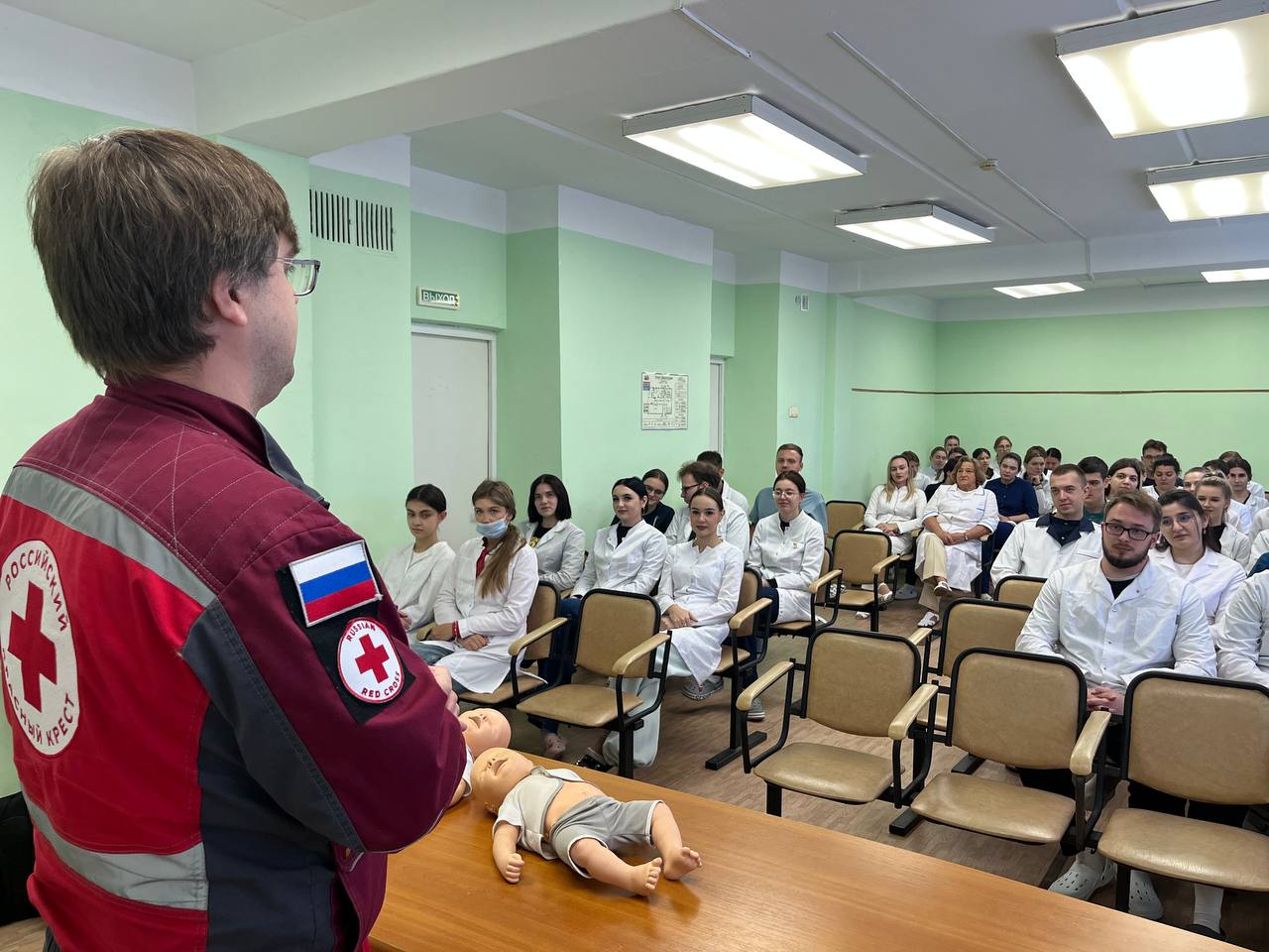 На базе ОБУЗ БСМП (городской родильный дом) начальник учебного центра Курского регионального отделения Российского Красного Креста, инструктор по первой помощи, врач анестезиолог-реаниматолог Алексей Репалов посветил лекцию по основам первом помощи для новорожденных и детей.