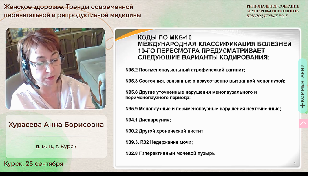 Welcoming addressed by Vice-rector for Educational Activities and General Issues of Kursk State Medical University, Associate Professor Vasily Petrovich Gavrilyuk, together with the Head of the Department of Obstetrics and Gynecology, Associate Professor Oksana Yurievna Ivanova, whose also acting as the moderator for the conference. The need of such event which attended by practitioners and future doctors of all specialties was expressed, in order to maintain the reproductive health of women in our country.
