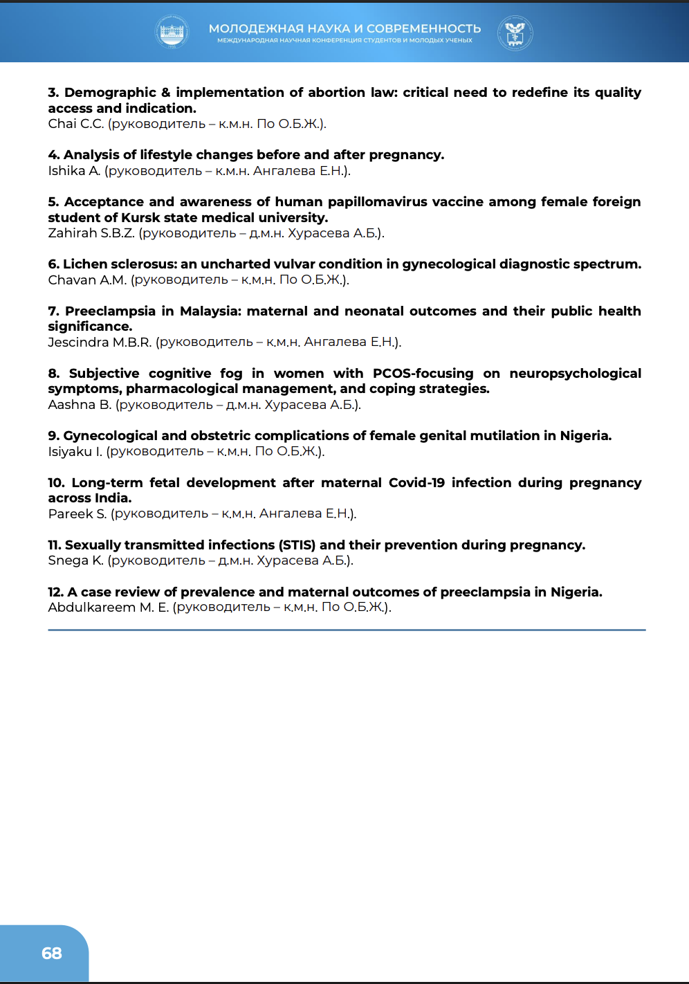 Muhammad I.B.E. (руководитель – д.м.н. Хурасева А.Б.).