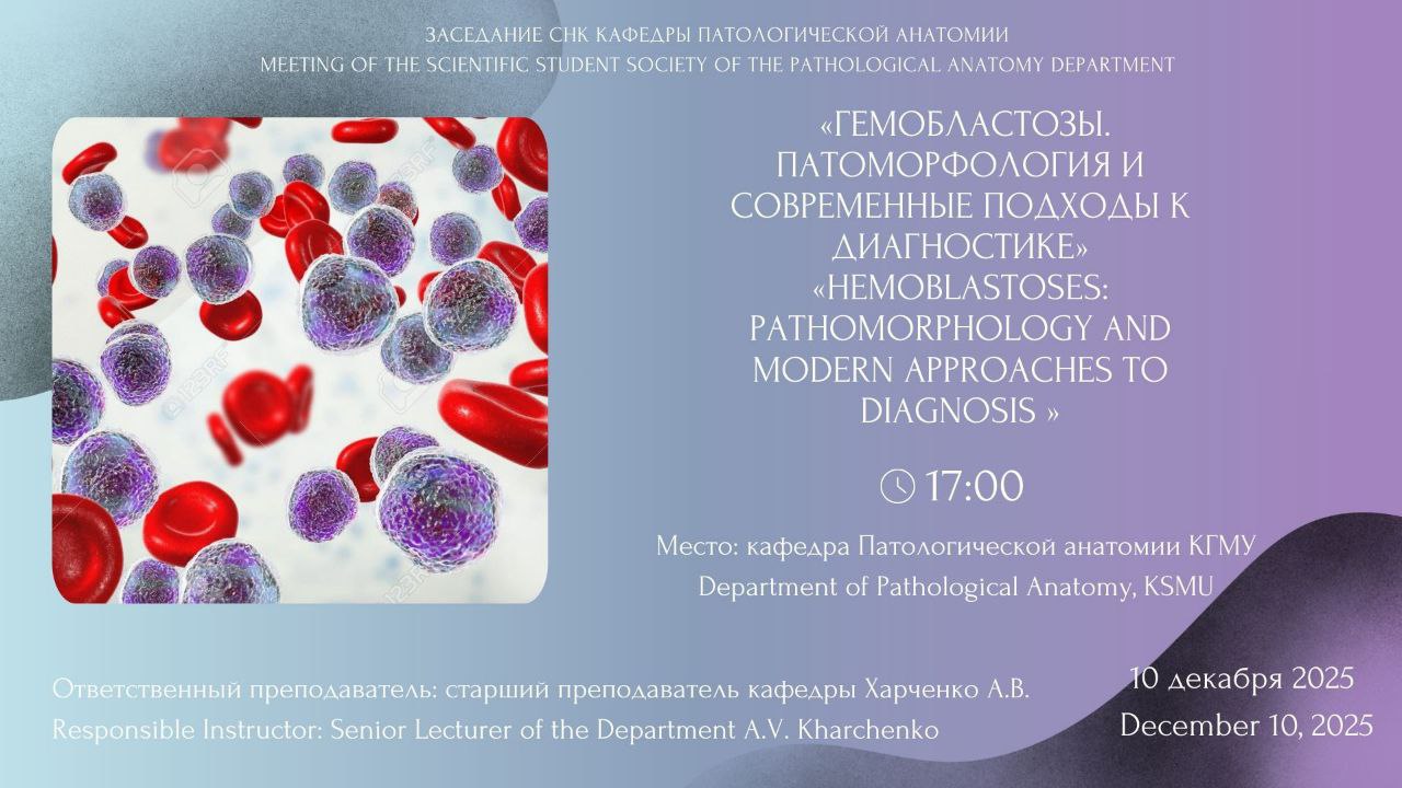 10 декабря 2025 года состоялось заседание СНК Патологической анатомии на тему: «Гемобластозы. Патоморфология и современные подходы к диагностике»