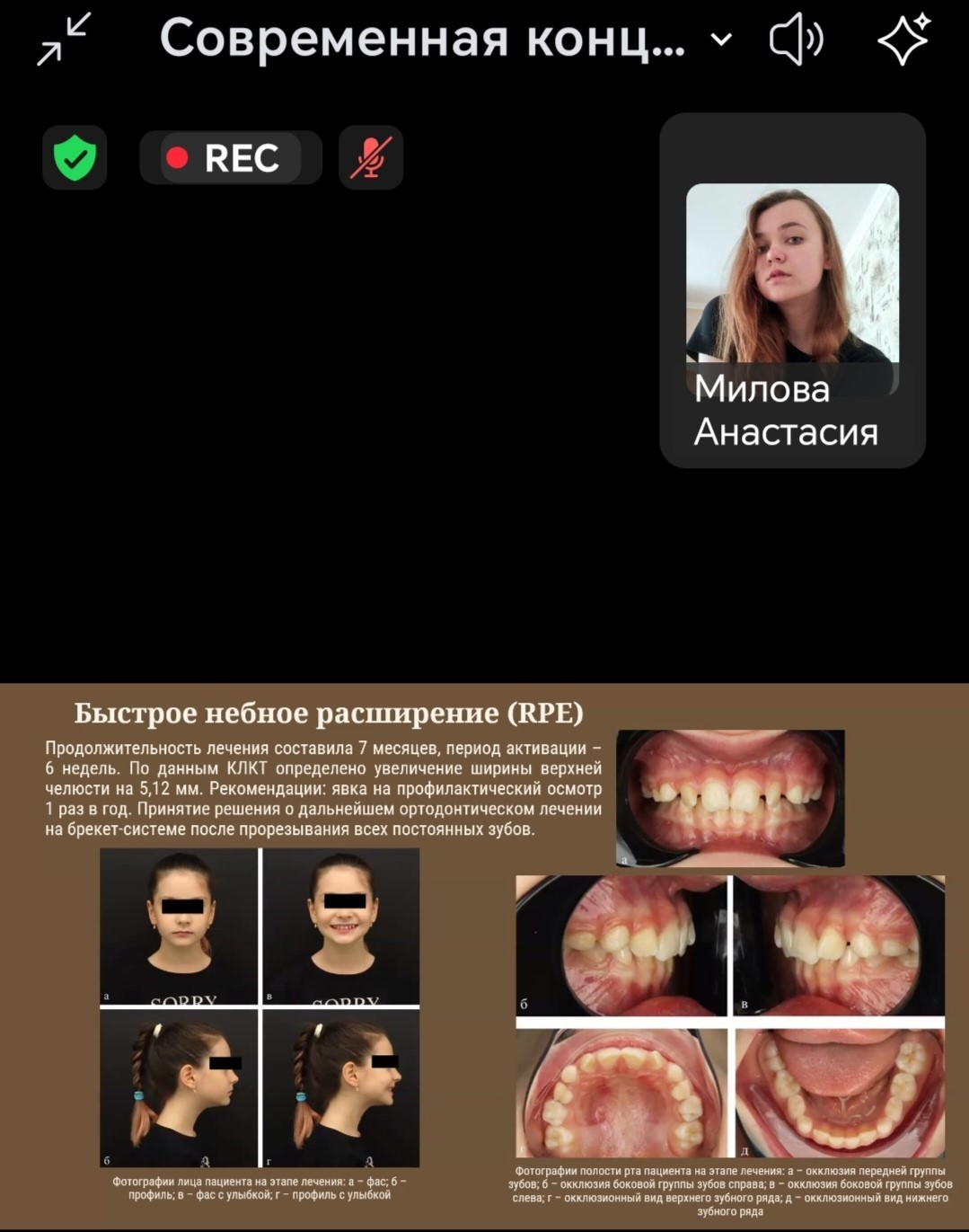 I место заняла Милова Анастасия (научный руководитель – заведующая кафедрой, Карлаш А.Е.) с докладом на тему: «Анализ клинических этапов расширения верхней челюсти в трансверзальной плоскости в разных возрастных периодах».