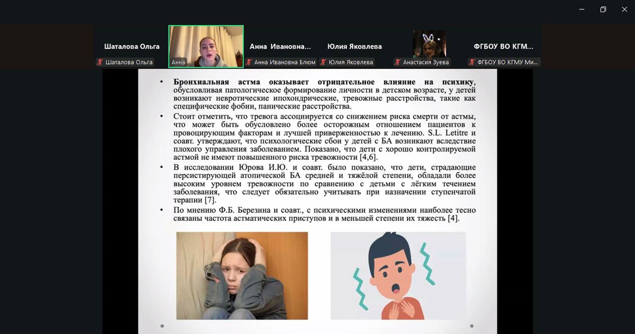 2. Vanzha A.S. (6th year, 3rd group, pediatric faculty) with a report “Psychosomatic aspects of bronchial asthma in children” revealed the influence of psychological factors on the course of the disease and presented modern approaches to complex therapy.