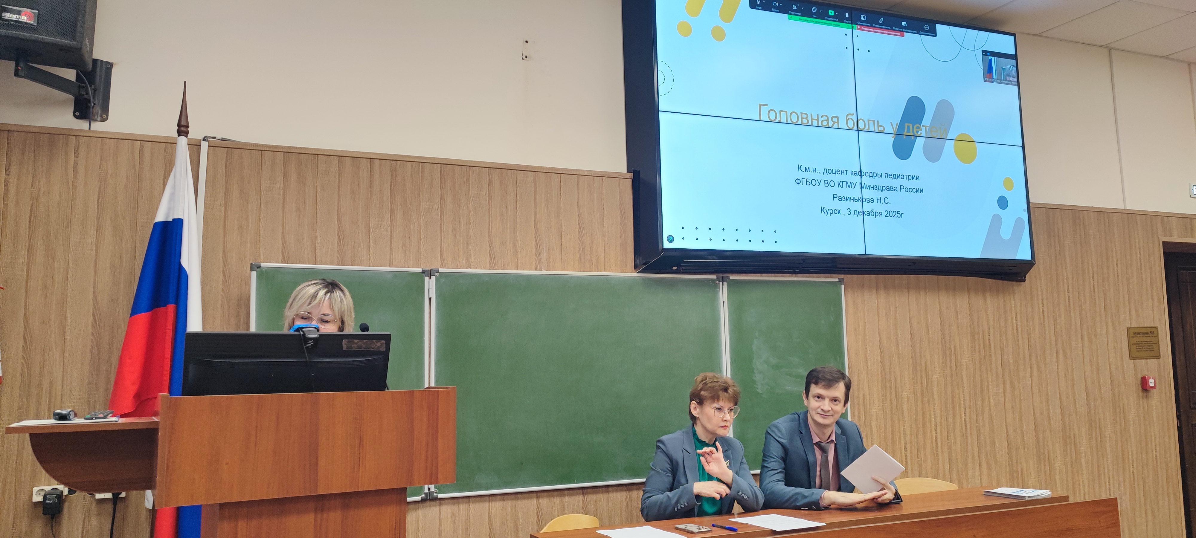 Современные аспекты диагностики и лечения детей освещала доцент кафедры педиатрии КГМУ Разинькова Н.С. с докладом «Головная боль у детей». В своей работе она подчеркнула важность ранней диагностики этого распространенного симптома и рекомендовала комплексный подход к его лечению.
