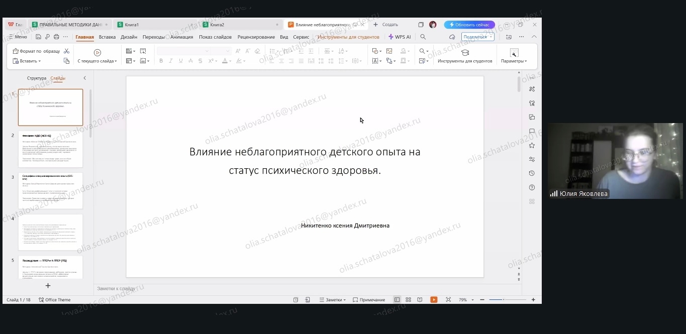 The report "The Impact of Adverse Childhood Experiences on Mental Health Status" by fifth-year clinical psychology student K.D. Nikitenko was dedicated to studying the long-term consequences of childhood trauma related to experienced violence. The pilot study demonstrated how this negative experience becomes a risk factor for mental and psychosomatic disorders in adulthood among women.
