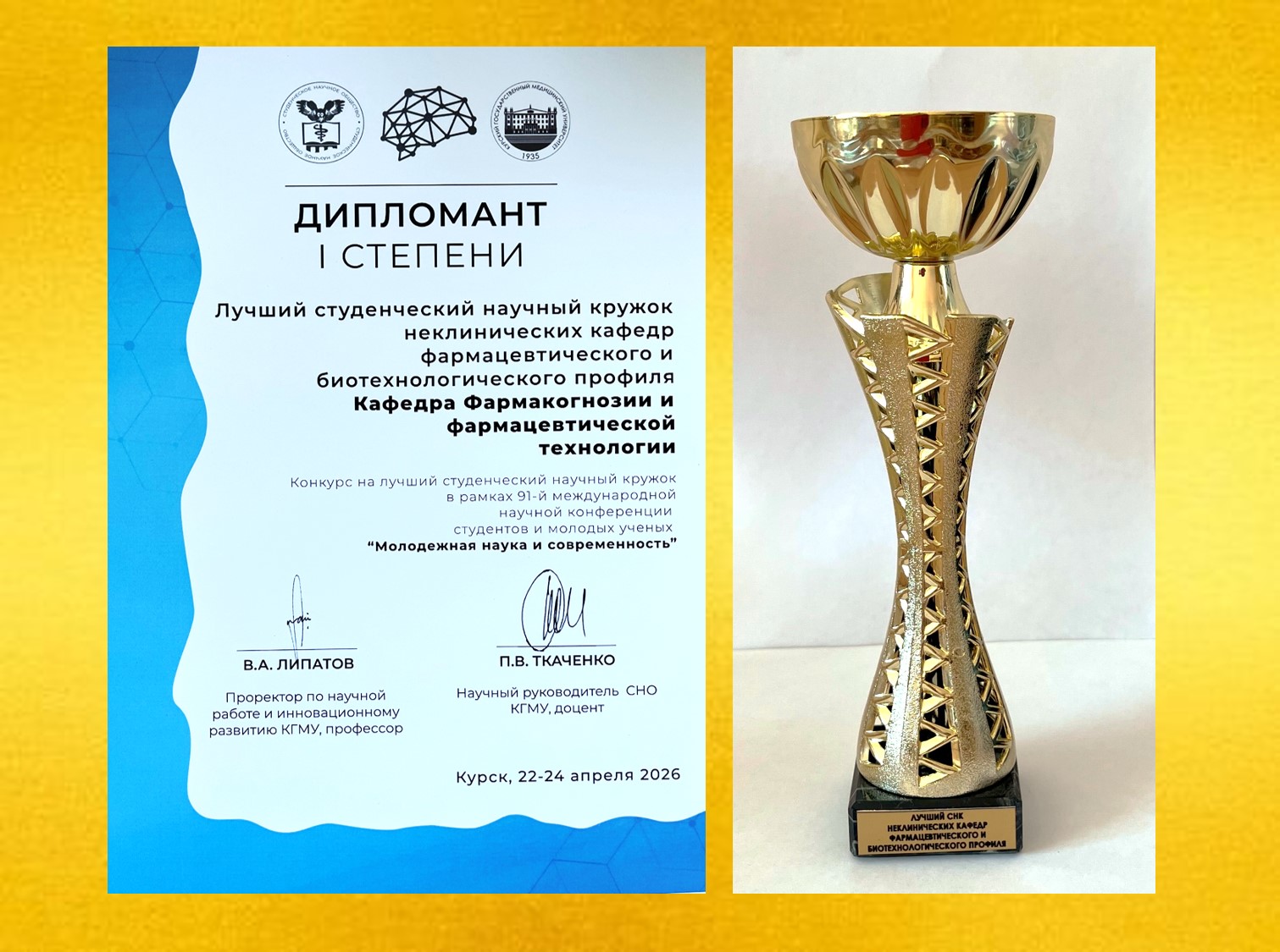 СНК КАФЕДРЫ – ПОБЕДИТЕЛЬ В НОМИНАЦИИ «Лучший СНК неклинических кафедр фармацевтического и биотехнологического профиля»