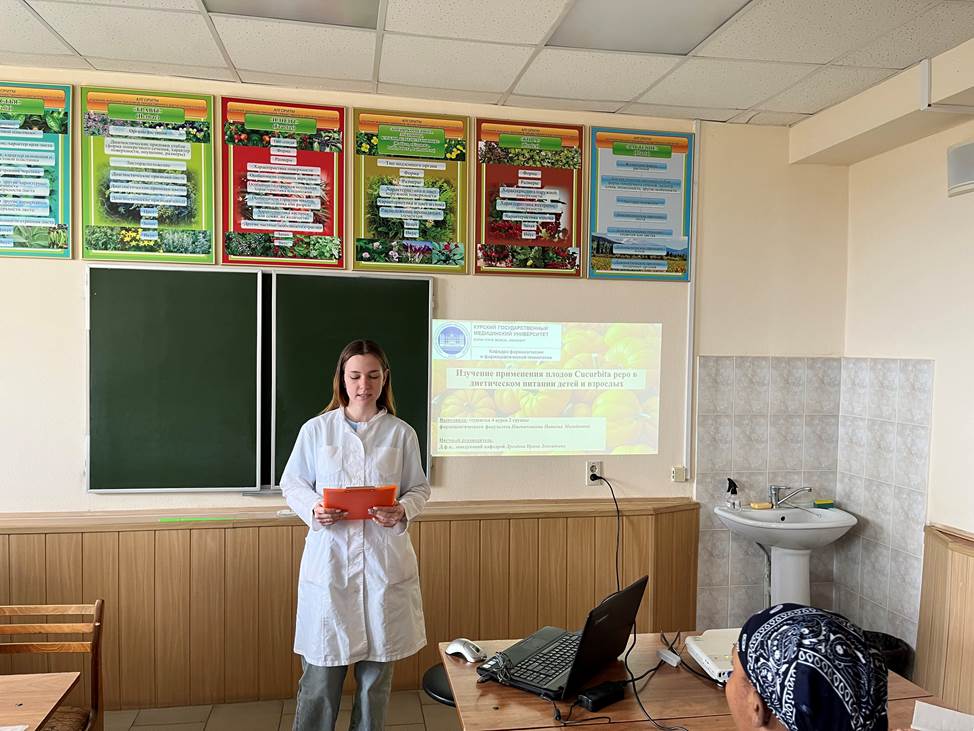 Студенты 2,3,4,5 курсов фармацевтического факультета, а также ММИ КГМУ, активно занимающиеся в студенческом научном кружке кафедры, представили результаты своих исследований. Доклады, выполненные под руководством преподавателей кафедры, были посвящены исследованию химического состава различных лекарственных видов, применению растений в лечении и профилактике различных нозологий, в диетическом питании, а также использованию препаратов из растений в спорте.
