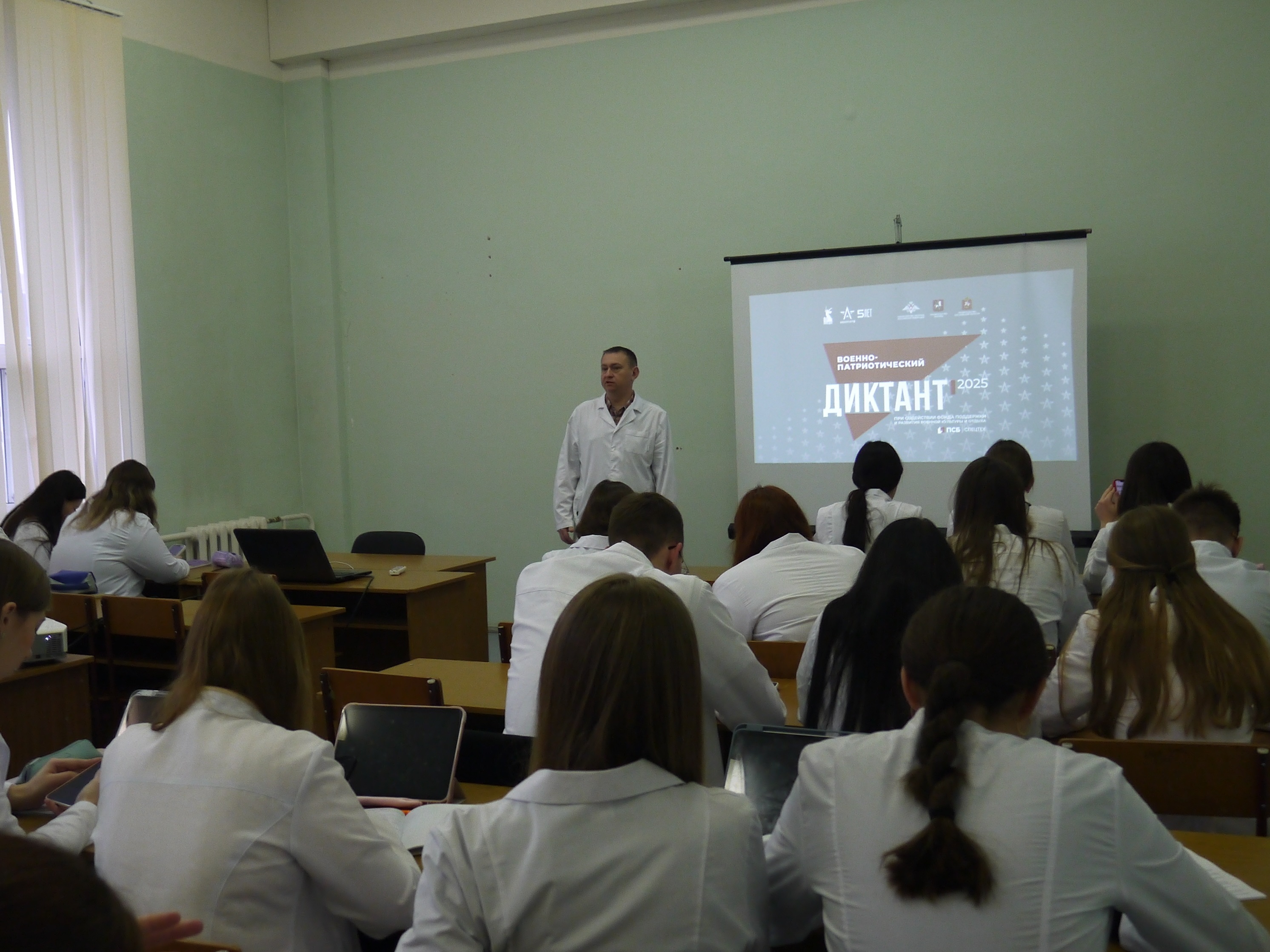 1 декабря 2025 г. КГМУ стал площадкой для проведения IV Ежегодной всероссийской просветительской акции «ВОЕННО-ПАТРИОТИЧЕСКИЙ ДИКТАНТ – 2025». Мероприятие прошло на кафедре философии университета. В нем приняли участие более 150 студентов факультетов медико-профилактического дела, клинической психологии, педиатрического, фармацевтического и лечебного факультетов.