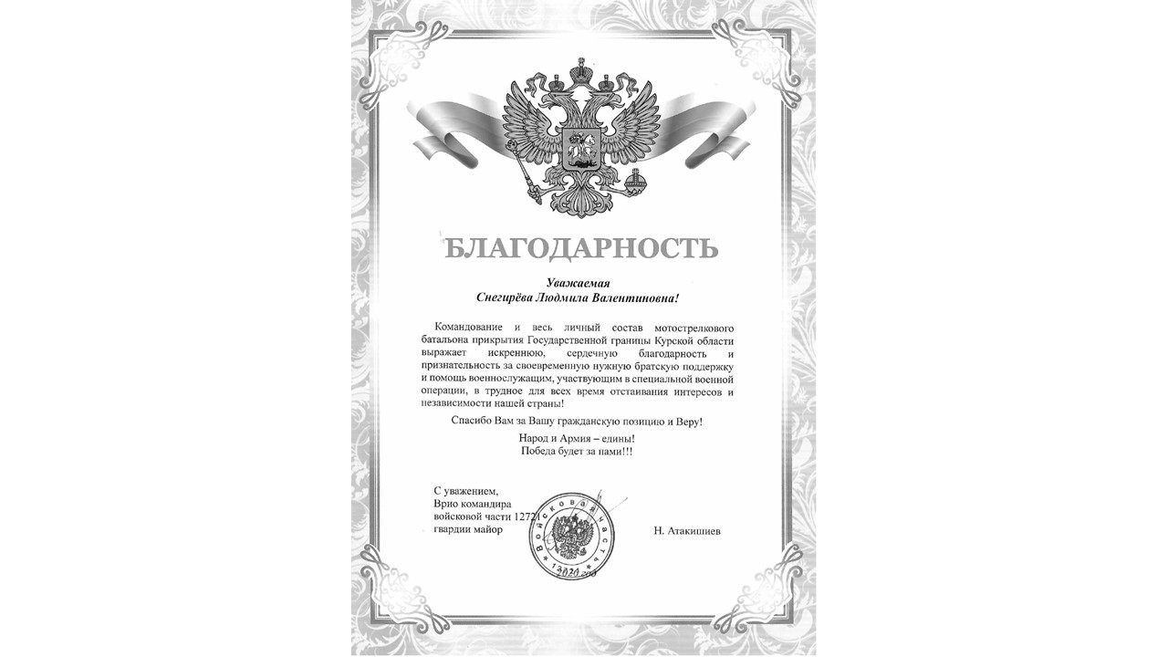 Благодарность заведующему кафедрой физики, информатики и математики от бойцов