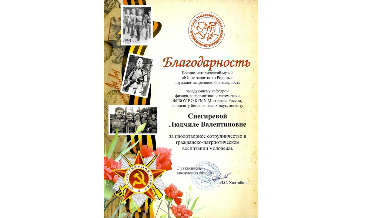 27 февраля 2023 года в Курском государственном медицинском университете состоялось мероприятие «Подвиг Ваш БЕССМЕРТЕН!», посвященное памяти участника Великой Отечественной войны, заведующего кафедрой физики с высшей математикой Курского государственного медицинского института, профессора Михаила Павловича Попова, памяти юных защитников Родины – военных моряков, выпускников Соловецкой школы юнг, памяти всех, кто в 1941-1945 годах сражался за Родину!