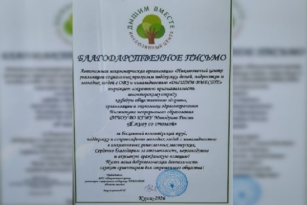 Волонтерский отряд "Я живу со стомой" был награжден благодарственным письмом