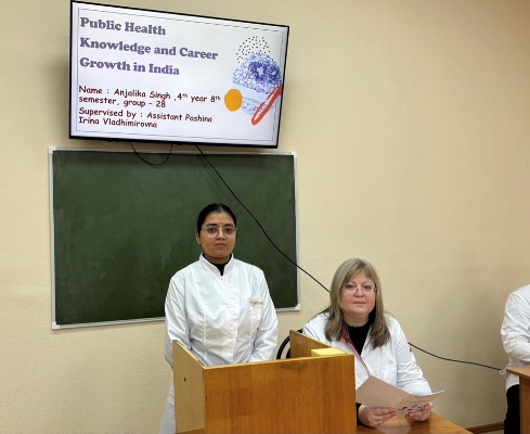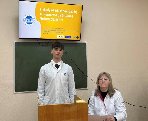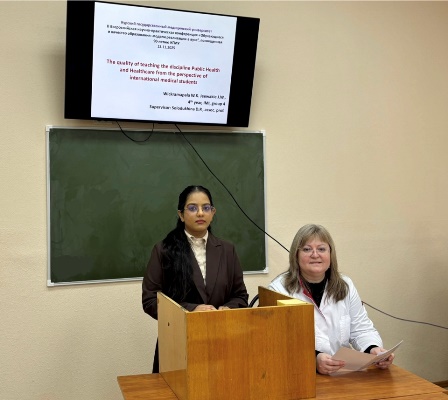 Students of the International Medical Institute of Kursk State Medical University - participants of the student scientific society from the Department of Public Health, Organization and Economics of Healthcare of the Institute of Continuous Education published scientific articles in the conference proceedings. The presentations examined various aspects that determine educational quality, including the role of faculty, stress management, lifestyle factors, and participation in research. Students shared their opinions on modern teaching approaches, digital learning platforms, and the importance of practical training in medicine. Several presentations also focused on specific topics, such as public health, analyzing international students' perceptions of the quality of education in these areas. Collectively, these studies provide valuable feedback that can contribute to improving the educational environment and enhancing the academic performance of students at the International Medical Institute. This section emphasizes the importance of intercultural understanding, student well-being, and innovation in medical education. At the end of each presentation, students actively participated in a question-and-answer session, demonstrating interest in the topic. Overall, this reflects KSMU's growing commitment to enhancing the quality of education through a student-centered approach and international collaboration.