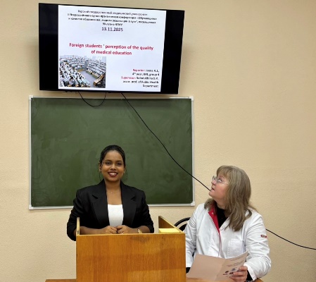 On November 13, 2025, at the Department of Public Health, Organization and Economics of Healthcare of the Institute of Continuous Education, under the guidance of Doctor of Medical Sciences, Professor of the Department of Public Health, Organization and Economics of Healthcare of Kursk State Medical University Ivan Viktorovich Tarasenko and Doctor of Medical Sciences, Professor of the Department of Public Health, Organization and Economics of Healthcare of Kursk State Medical University Victoria Alexandrovna Lopukhova, within the framework of the II All-Russian scientific and practical conference "STUDENTS AND THE QUALITY OF EDUCATION: MODELS OF IMPLEMENTATION IN THE UNIVERSITY", dedicated to the 90th anniversary of KSMU, Section 5 "FOREIGN STUDENTS ON THE QUALITY OF EDUCATION" was held.