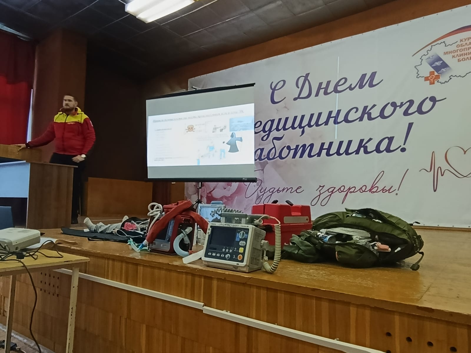 Также Николай Александрович поделился со студентами своим опытом работы и рассказал как попал в Центр медицины катастроф. Огромное спасибо организаторам мероприятия, а также руководсту ОБУЗ "Курская областная многопрофильная клиническая больница" за предоставление площадки для провдения мастрер-класса.