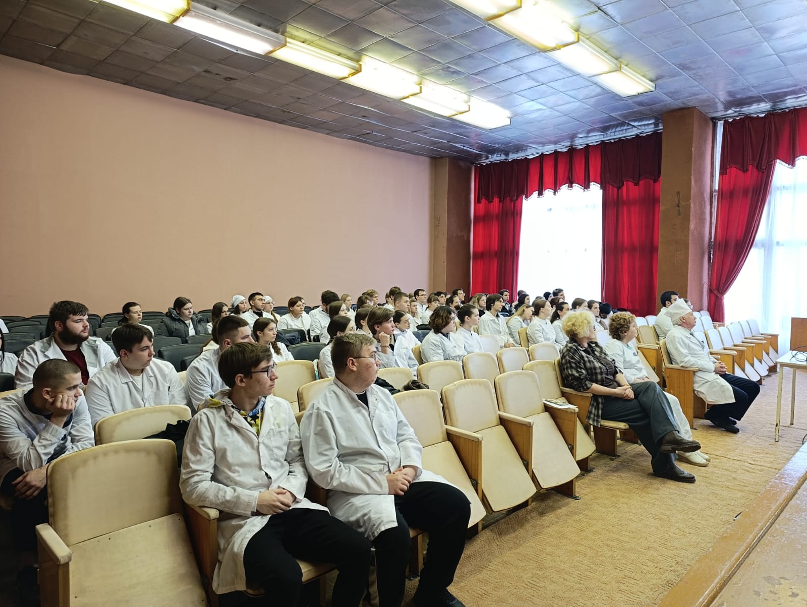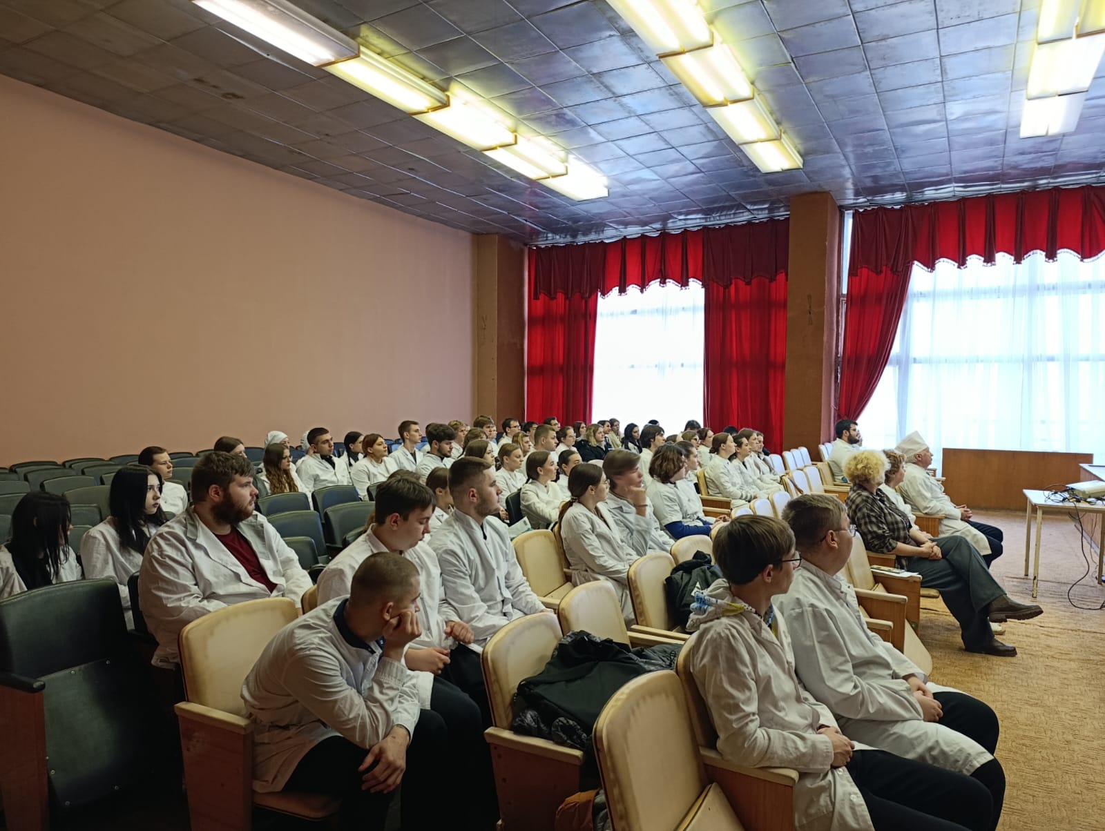 18 ноября 2025 года на базе ОБУЗ "Курская областная многопрофильная клиническая больница" состоялся мастер-класс по оказанию помощи на догоспитальном этапе в условиях ЧС. Обучающиеся лечебного факультета, а также отделения "Лечебное дело" медико-фармацевтического колледжа вместе с преподавателями кафедр сестринского дела и общественного здоровья, организации и экономики здравоохранения ИНО провели очень интересную беседу с медицинским братом Курского территориального центра медицины катастроф Пантеевым Николаем Александровичем.